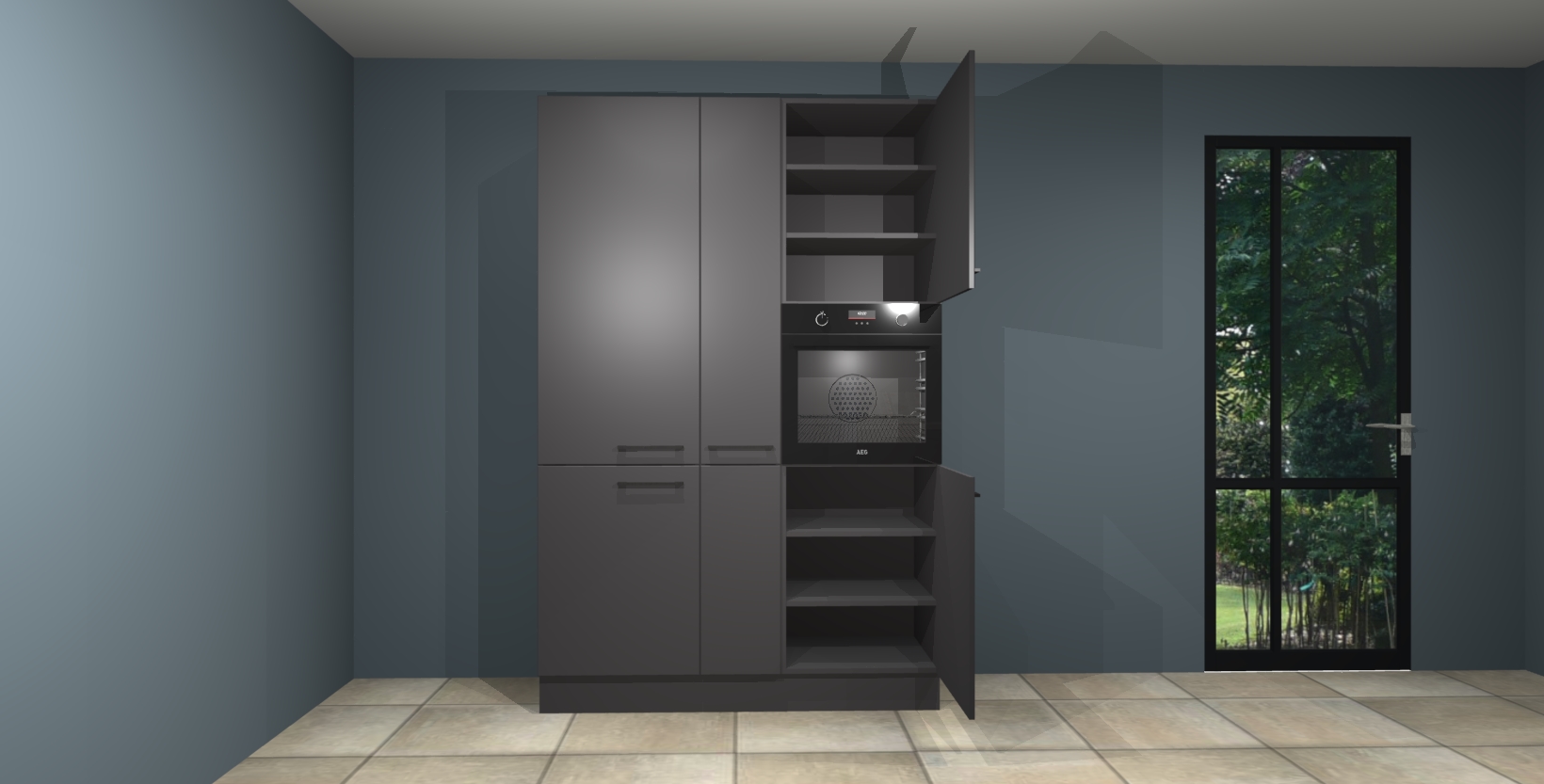 Met een modern, tijdloos design en ruime opslagruimte, zult u zich in no-time thuis voelen in uw nieuwe keuken. Uw leven wordt eenvoudiger met de soft-close deuren die voor het ultieme stille comfort zorgen - geen geluid dat u stoort terwijl u kookt. Ook is de keuken voorzien van 5 ingebouwde apparaten: een oven, inductie kookplaat, afzuigkap, vaatwasser en koelkast. Deze kunnen gemakkelijk na bestelling worden bijgewerkt naar AEG - waardoor uw luxe ervaring compleet is.