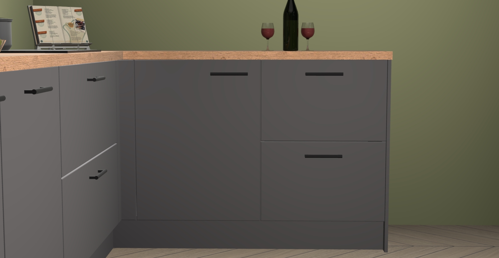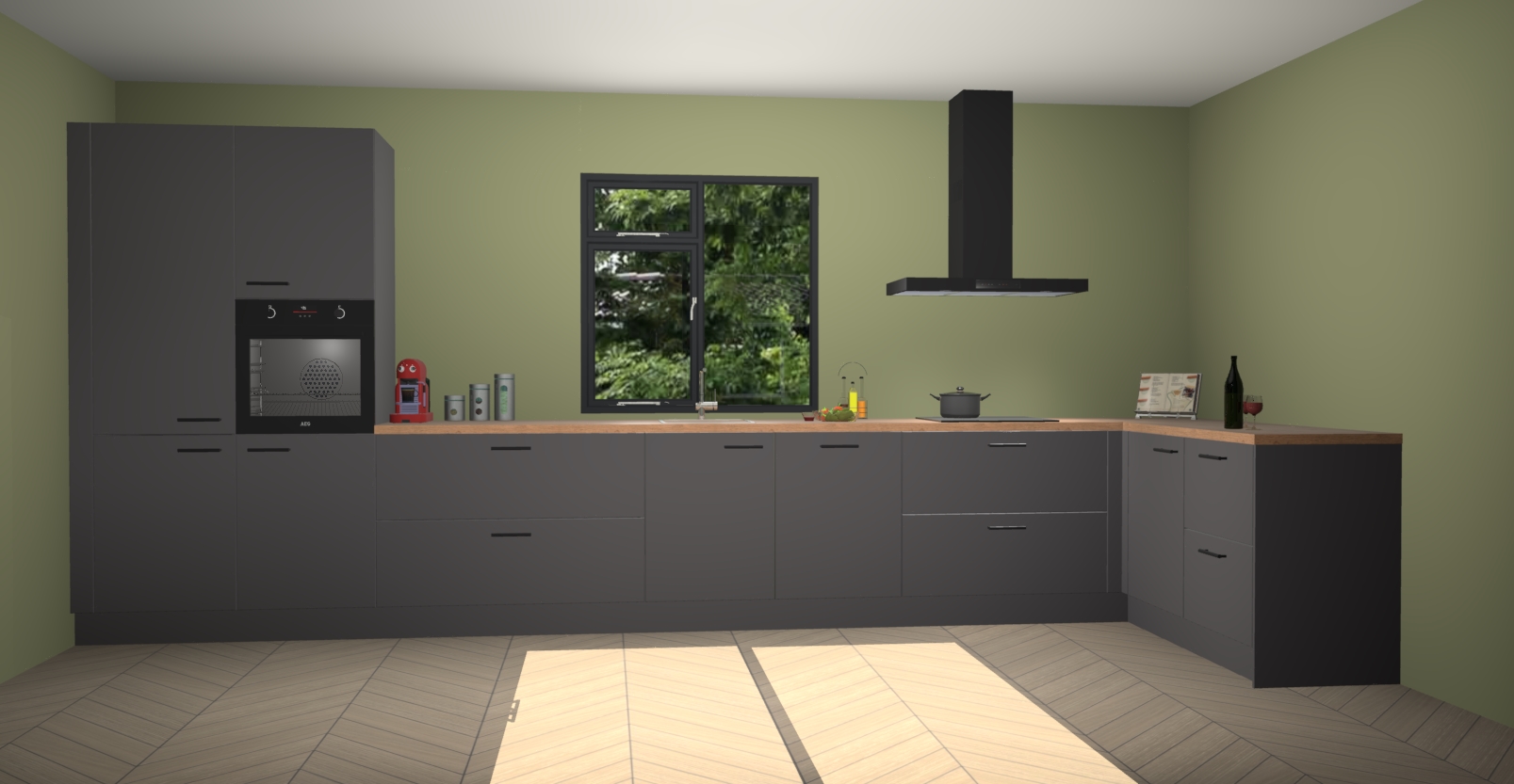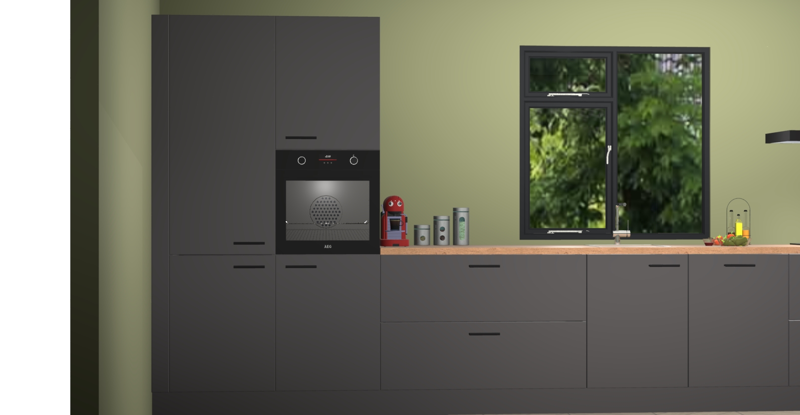 De Onyxgrijze keuken Lille wordt geleverd met vijf inbouwapparaten - een oven, inductiekookplaat, afzuigkap, vaatwasser en koelkast. Maar dat is nog niet alles! Na bestelling kunnen deze apparaten eenvoudig worden geüpgraded naar premium AEG-apparatuur. Bovendien is er zelfs de optie om de oven te vervangen door een combimagnetron of uw inductiekookplaat te vervangen door een kookplaat met geïntegreerde afzuiging.