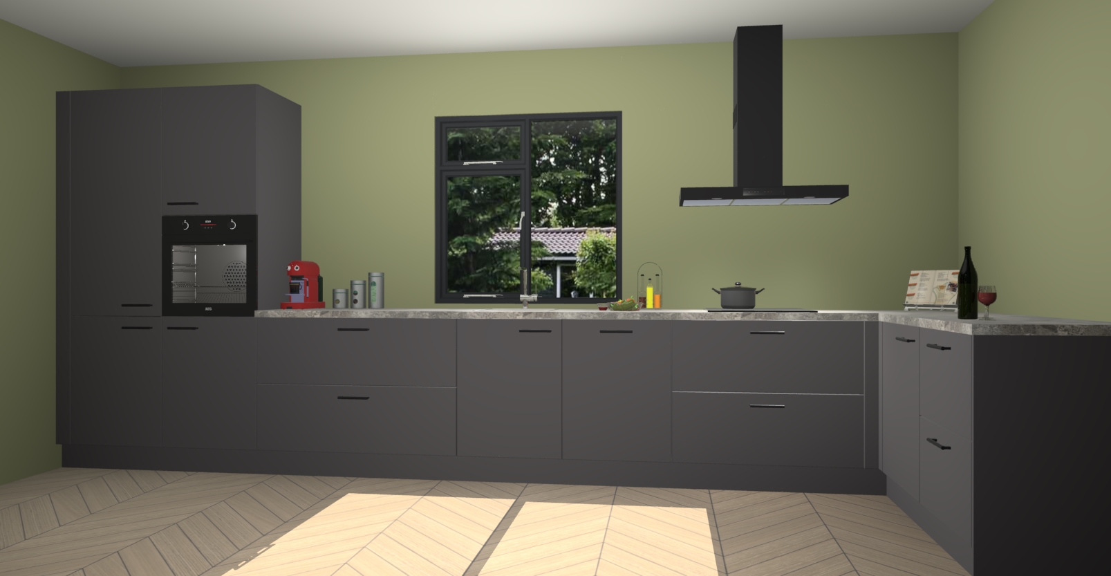 Wilt u uw keuken upgraden en de perfecte moderne toets geven? Kijk dan niet verder dan de Onyxgrijze keuken Lille. Deze mega moderne keuken straalt warmte en sfeer uit en is daarmee de perfecte aanvulling voor elke ruimte.