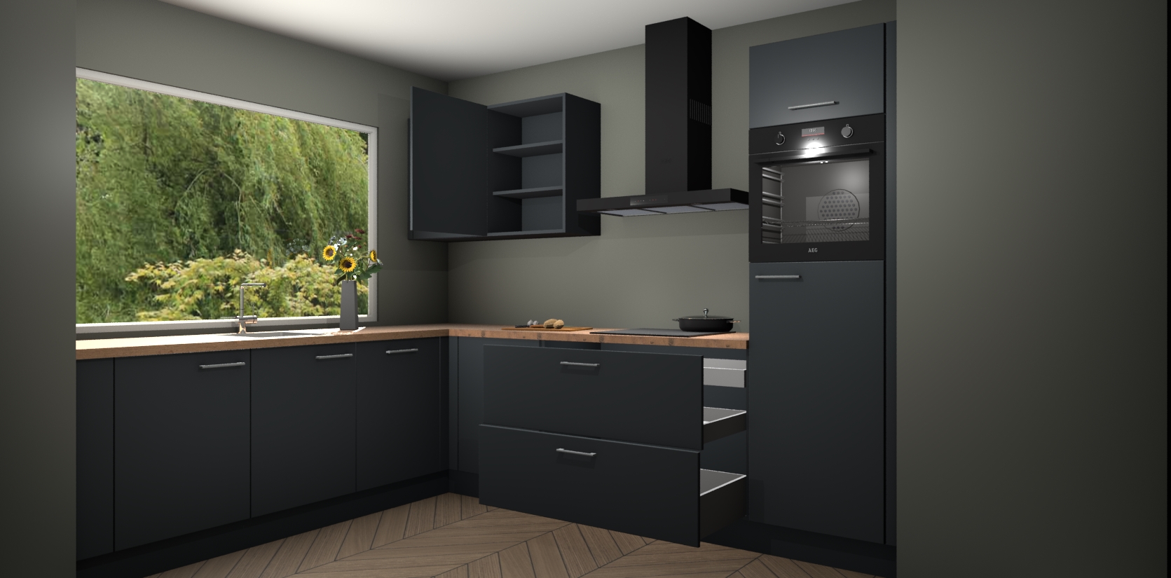 Bent u op zoek naar een onberispelijk keukenontwerp dat Duitse precisie en uitmuntende architectuur ademt? Zoek niet verder - de onyxgrijze keuken Limonos biedt de perfecte moderne mix van stijl en functionaliteit.