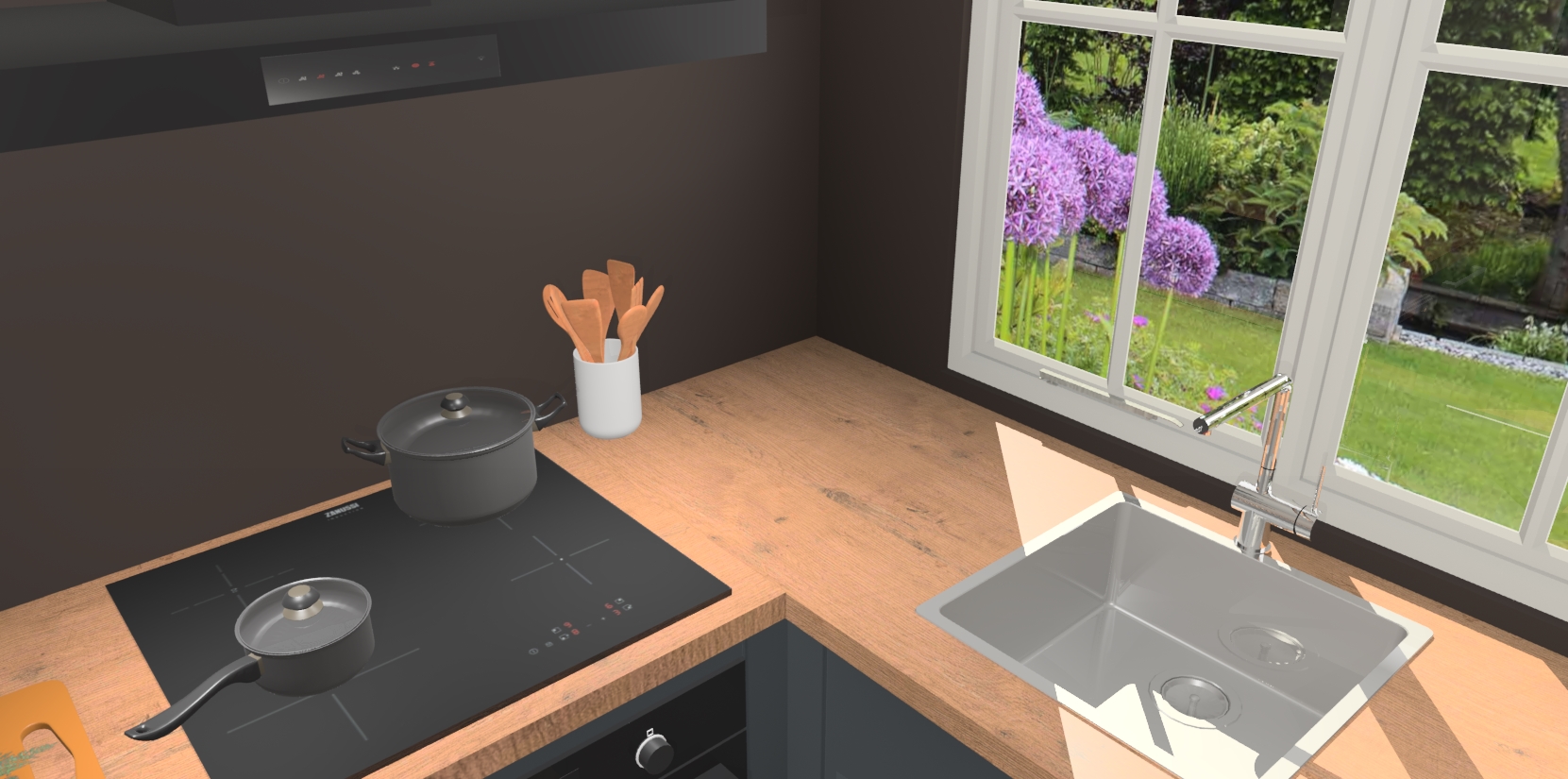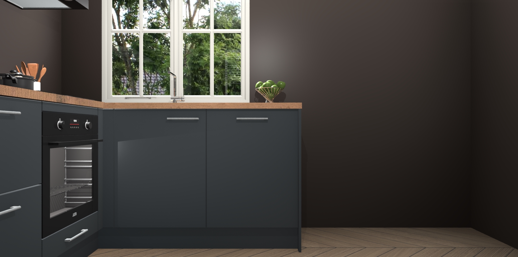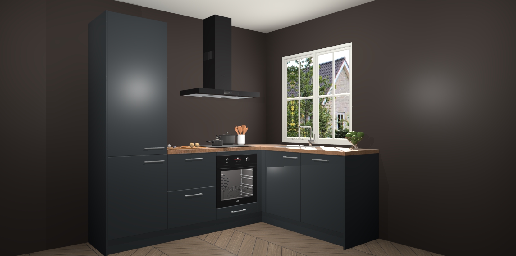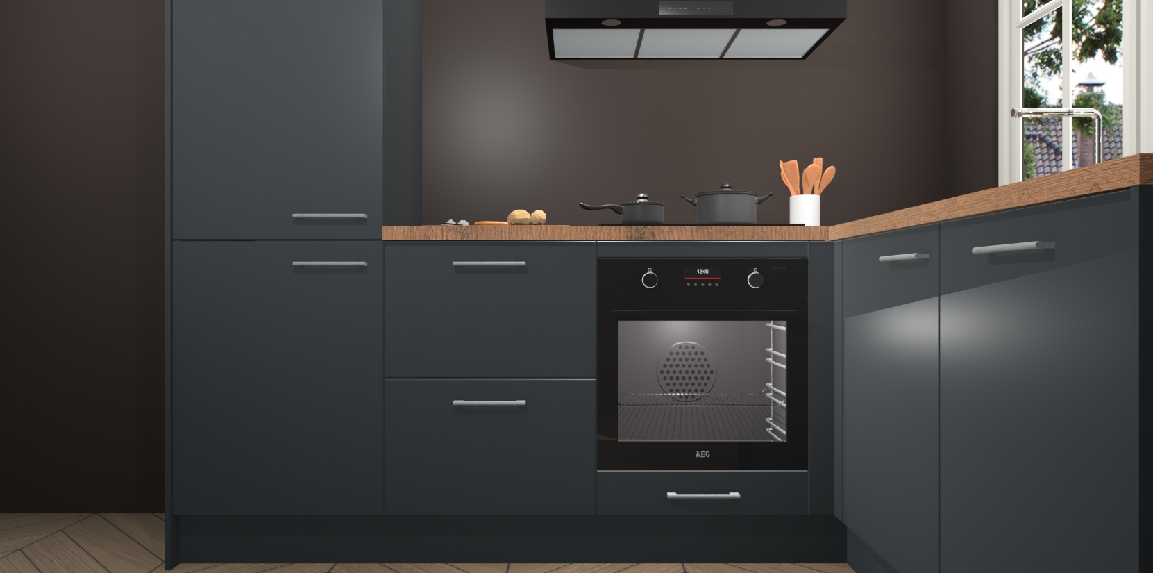 De Onyxgrijze keuken Linz is de perfecte keuze voor uw nieuwe moderne en tijdloze keuken. Ga voor moderne en tijdloze elegantie in uw keuken. De prachtige hoekkeuken biedt een verfrissende kijk op de manier waarop we ons vertrouwde keukenontwerp kunnen aanpassen in een nieuwe stijl. Één blik om alles te zien: zo mooi dat het bijna magisch lijkt.