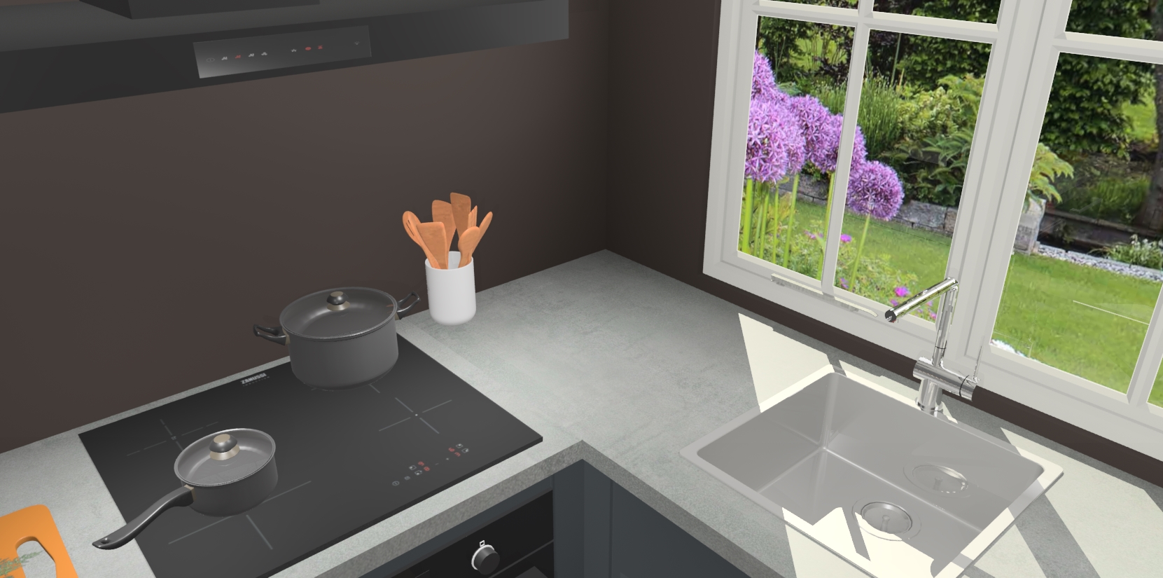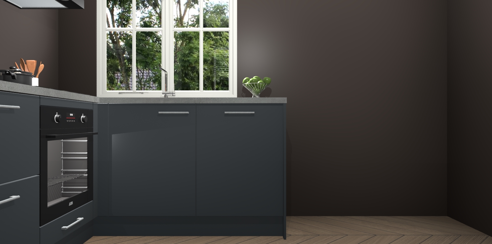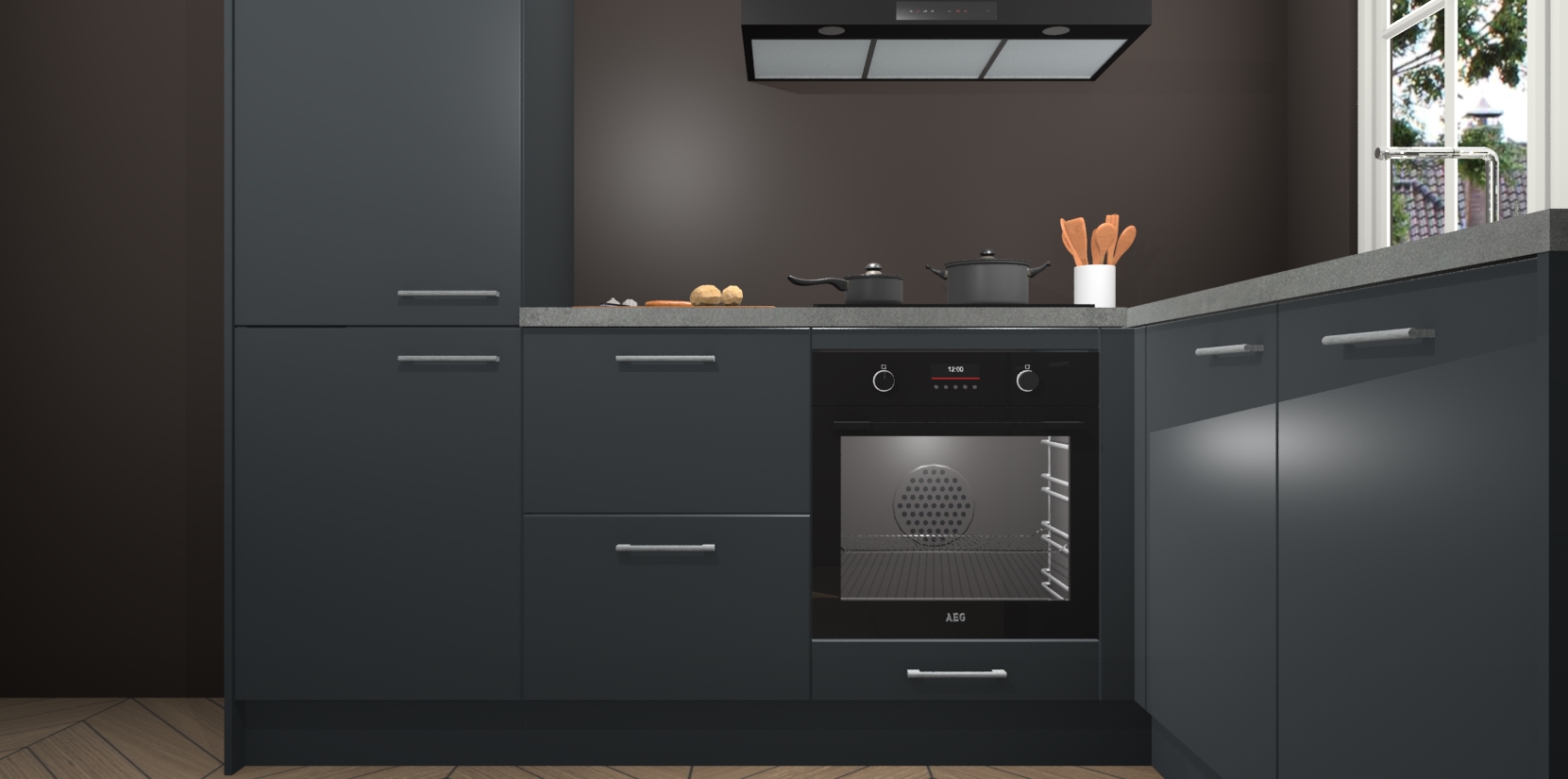 De Onyxgrijze keuken Linz is de perfecte keuze voor uw nieuwe moderne en tijdloze keuken. Ga voor moderne en tijdloze elegantie in uw keuken. De prachtige hoekkeuken biedt een verfrissende kijk op de manier waarop we ons vertrouwde keukenontwerp kunnen aanpassen in een nieuwe stijl. Één blik om alles te zien: zo mooi dat het bijna magisch lijkt.