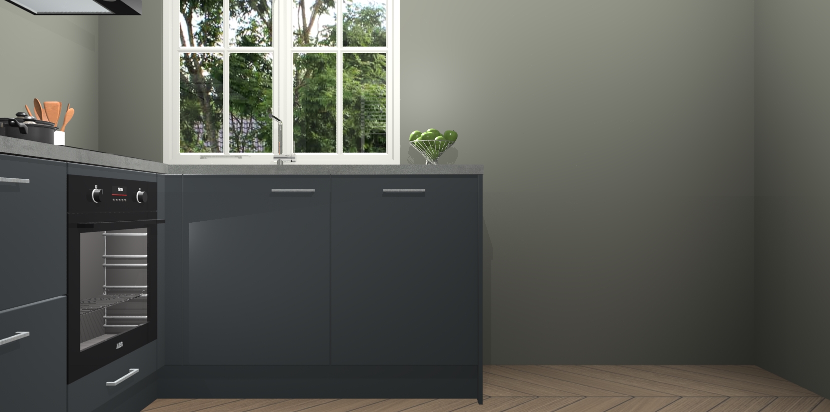 Met de Onyxgrijze keuken Linz krijgt u 5 op maat gemaakte apparaten: een oven, inductiekookplaat, afzuigkap, vaatwasser en koelkast die na bestelling makkelijk worden geüpgraded naar AEG-producten. Met de zacht sluitende deuren, bent u verzekerd van eenvoudige bediening in stilte. Het kastmeubilair wordt alvast pre-assemblage geleverd waardoor u sneller met het installeren begint. Ook zijn alle deuren voorzien van softclose zodat er geen sporen op de lade blijven als u ze dicht doet. Bovendien hoeft u bij ons geen twijfels of verassingen te hebben: we hebben een vaste lage prijs waardoor u weet wat u mag verwachten bij elke bestelling.