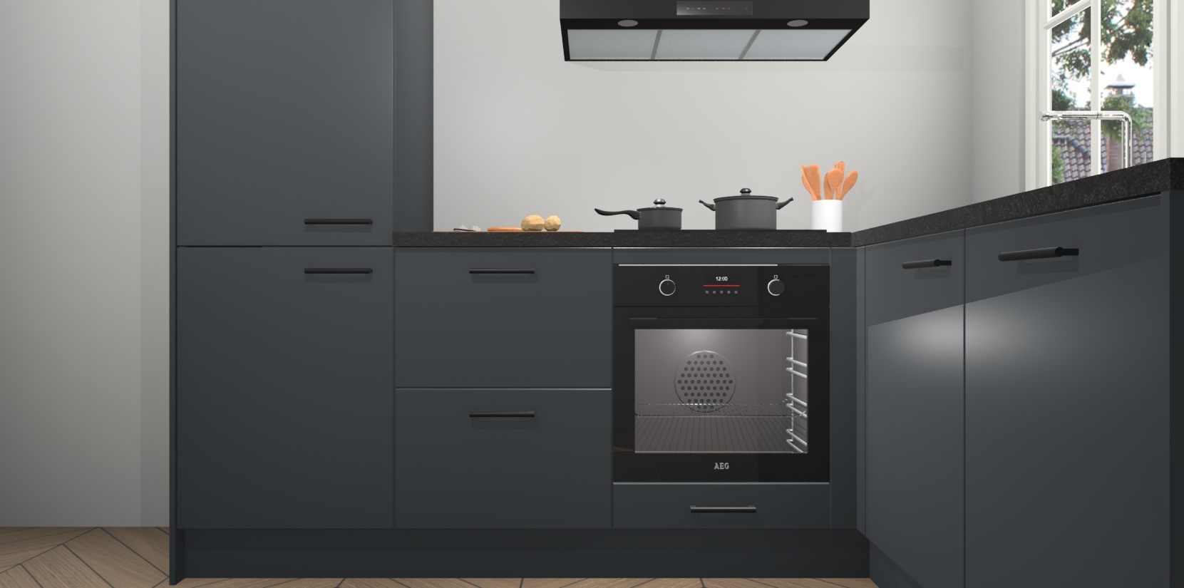 Met de Onyxgrijze keuken Linz krijgt u 5 op maat gemaakte apparaten: een oven, inductiekookplaat, afzuigkap, vaatwasser en koelkast die na bestelling makkelijk worden geüpgraded naar AEG-producten. Met de zacht sluitende deuren, bent u verzekerd van eenvoudige bediening in stilte. Het kastmeubilair wordt alvast pre-assemblage geleverd waardoor u sneller met het installeren begint. Ook zijn alle deuren voorzien van softclose zodat er geen sporen op de lade blijven als u ze dicht doet. Bovendien hoeft u bij ons geen twijfels of verassingen te hebben: we hebben een vaste lage prijs waardoor u weet wat u mag verwachten bij elke bestelling.