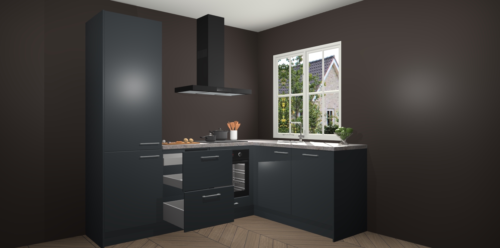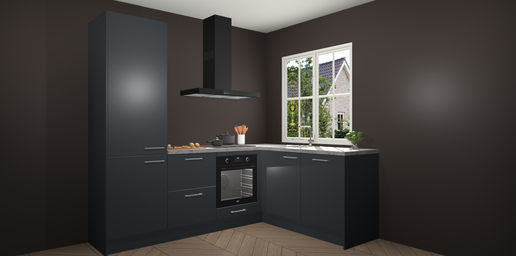 De Onyxgrijze keuken Linz is de perfecte keuze voor uw nieuwe moderne en tijdloze keuken. Ga voor moderne en tijdloze elegantie in uw keuken. De prachtige hoekkeuken biedt een verfrissende kijk op de manier waarop we ons vertrouwde keukenontwerp kunnen aanpassen in een nieuwe stijl. Één blik om alles te zien: zo mooi dat het bijna magisch lijkt.