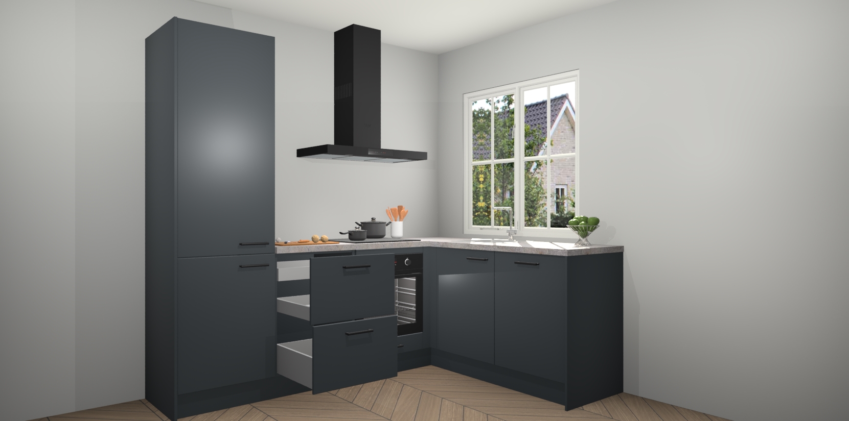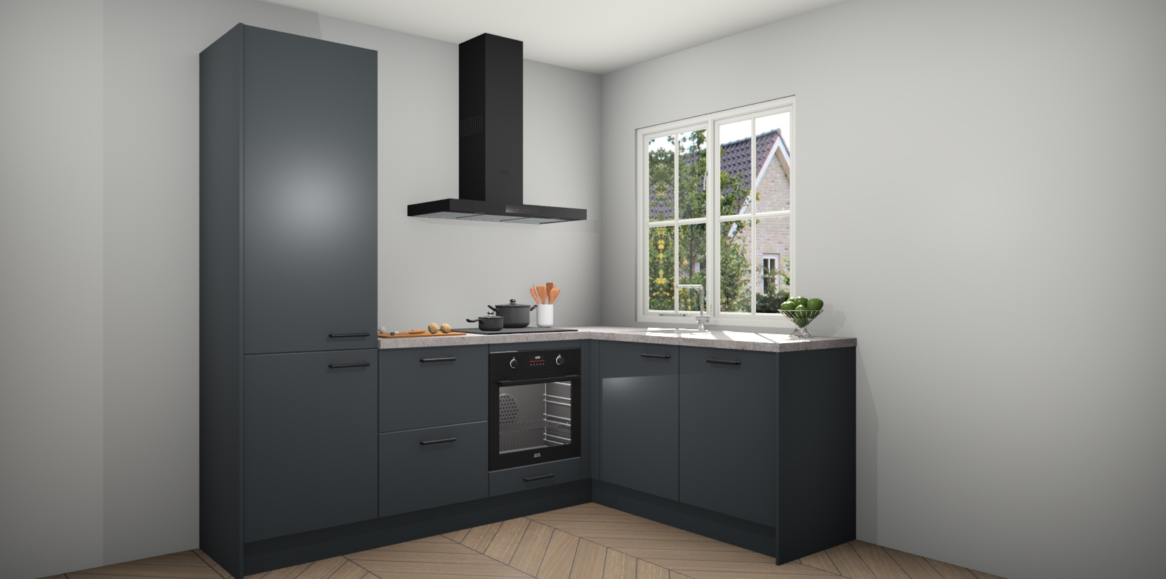 De Onyxgrijze keuken Linz is de perfecte keuze voor uw nieuwe moderne en tijdloze keuken. Ga voor moderne en tijdloze elegantie in uw keuken. De prachtige hoekkeuken biedt een verfrissende kijk op de manier waarop we ons vertrouwde keukenontwerp kunnen aanpassen in een nieuwe stijl. Één blik om alles te zien: zo mooi dat het bijna magisch lijkt.