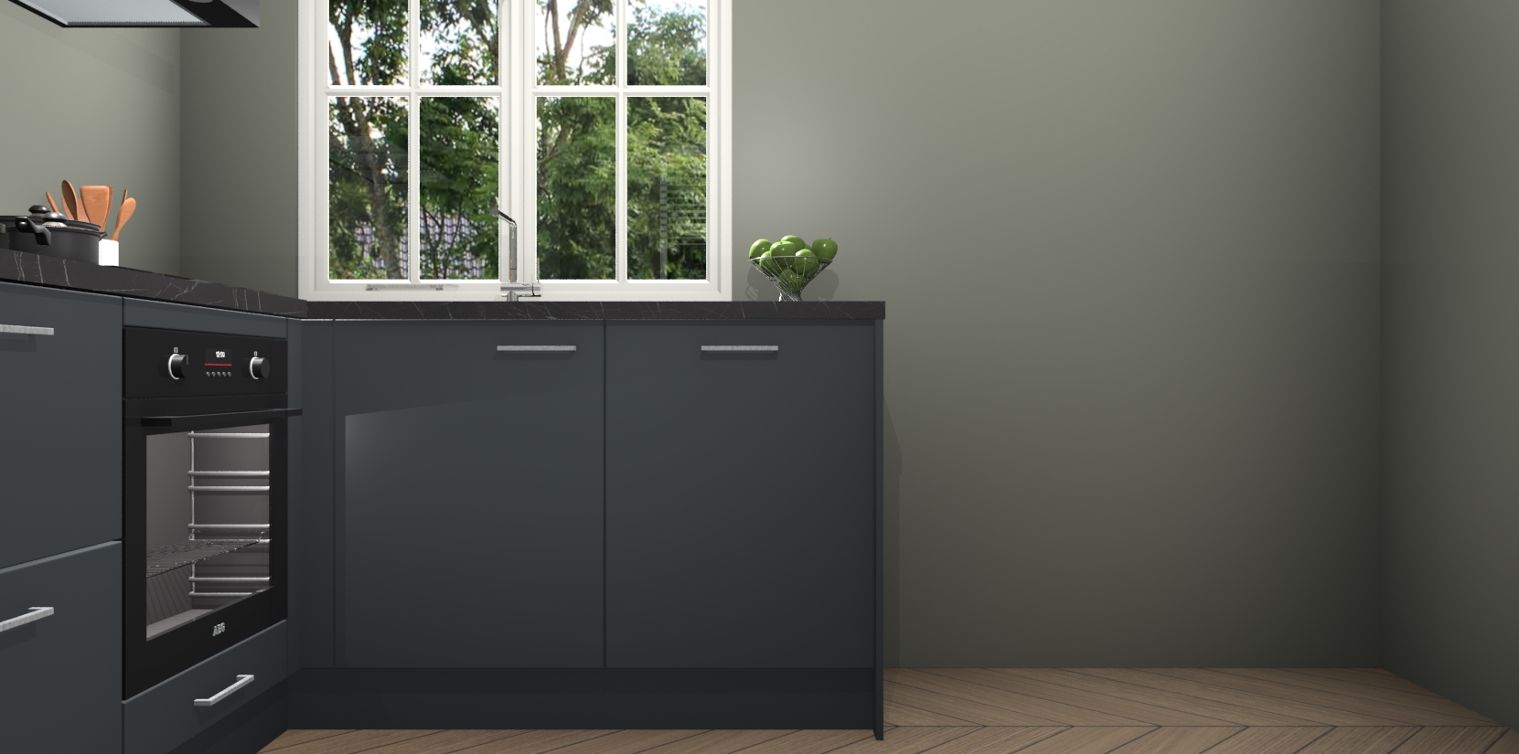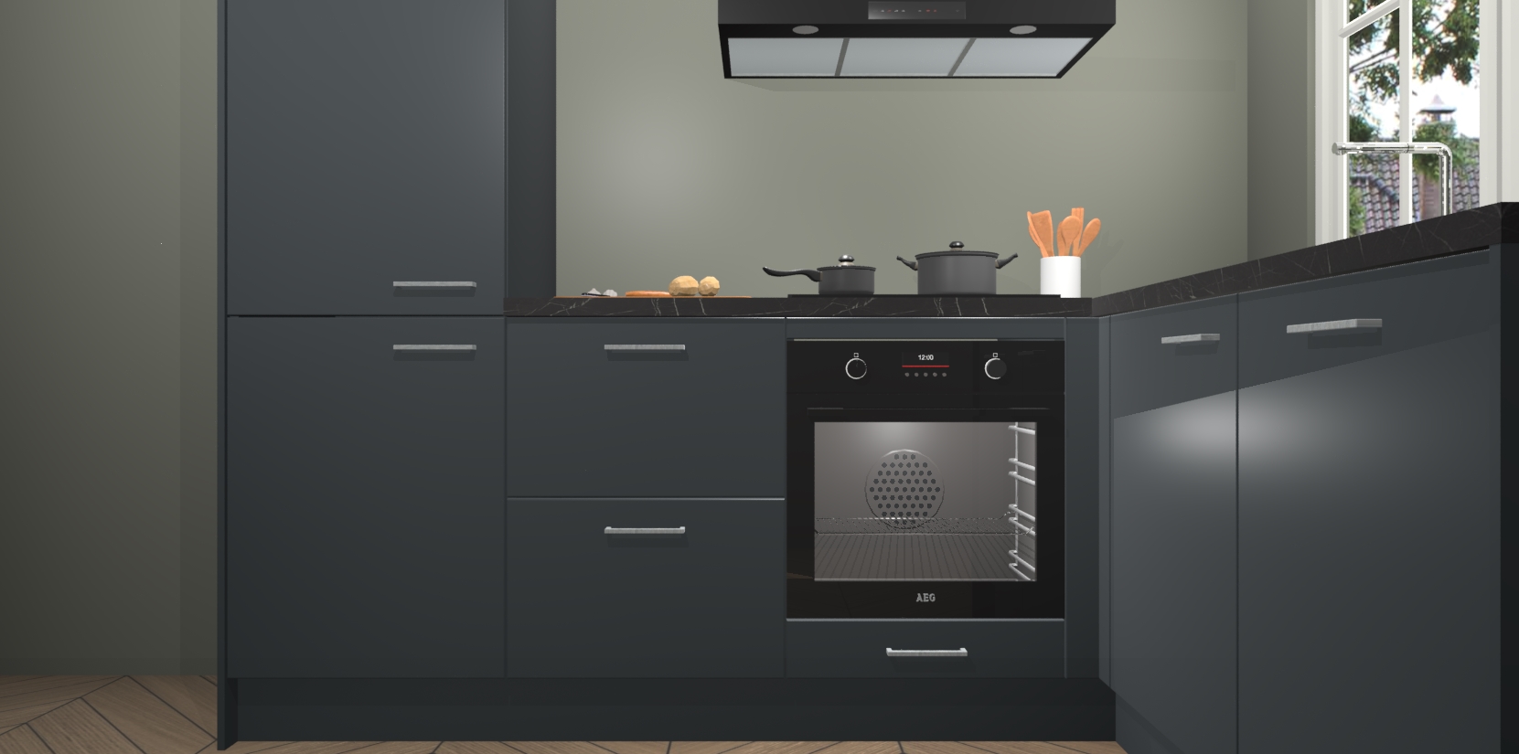 Met de Onyxgrijze keuken Linz krijgt u 5 op maat gemaakte apparaten: een oven, inductiekookplaat, afzuigkap, vaatwasser en koelkast die na bestelling makkelijk worden geüpgraded naar AEG-producten. Met de zacht sluitende deuren, bent u verzekerd van eenvoudige bediening in stilte. Het kastmeubilair wordt alvast pre-assemblage geleverd waardoor u sneller met het installeren begint. Ook zijn alle deuren voorzien van softclose zodat er geen sporen op de lade blijven als u ze dicht doet. Bovendien hoeft u bij ons geen twijfels of verassingen te hebben: we hebben een vaste lage prijs waardoor u weet wat u mag verwachten bij elke bestelling.