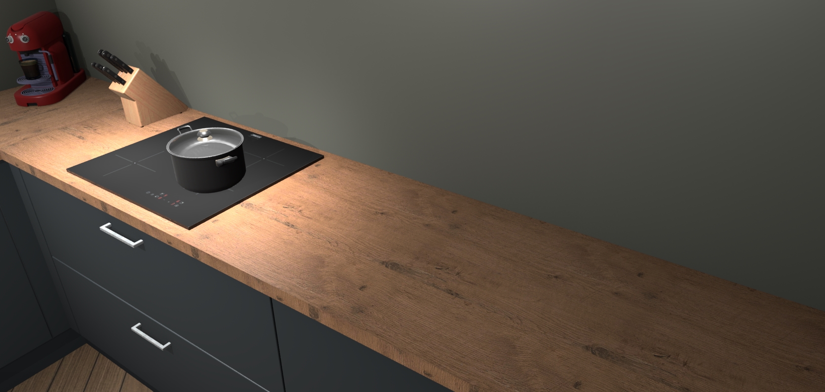 - Bij een hoekwerkblad zijn de hoeken in gevreesd en op maat gemaakt