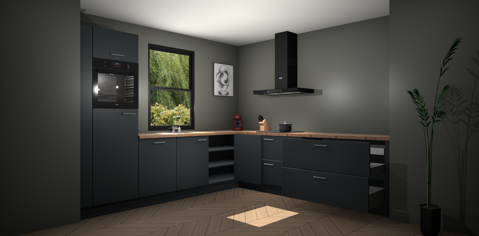 Welkom bij de onyxgrijze keuken Lublin. Deze prachtige keuken zal de komende jaren het middelpunt van de belangstelling in uw huis zijn. Uitgerust met vijf inbouwapparaten komt u nooit kookgereedschap tekort. Bovendien geeft de warme houtlook elke ruimte een uitnodigende en tijdloze uitstraling.