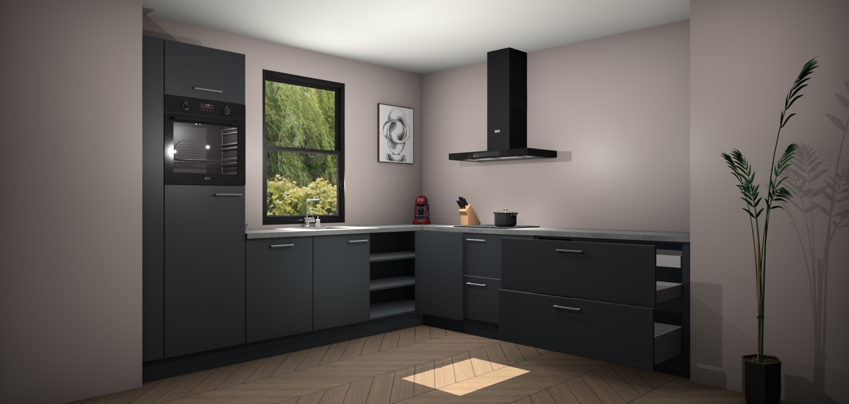 Welkom bij de onyxgrijze keuken Lublin. Deze prachtige keuken zal de komende jaren het middelpunt van de belangstelling in uw huis zijn. Uitgerust met vijf inbouwapparaten komt u nooit kookgereedschap tekort. Bovendien geeft de warme houtlook elke ruimte een uitnodigende en tijdloze uitstraling.