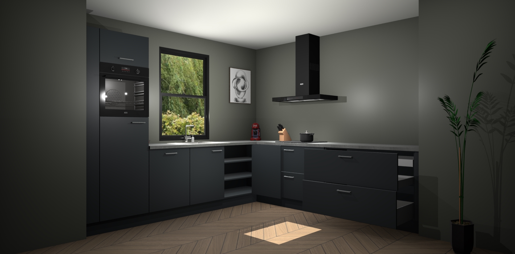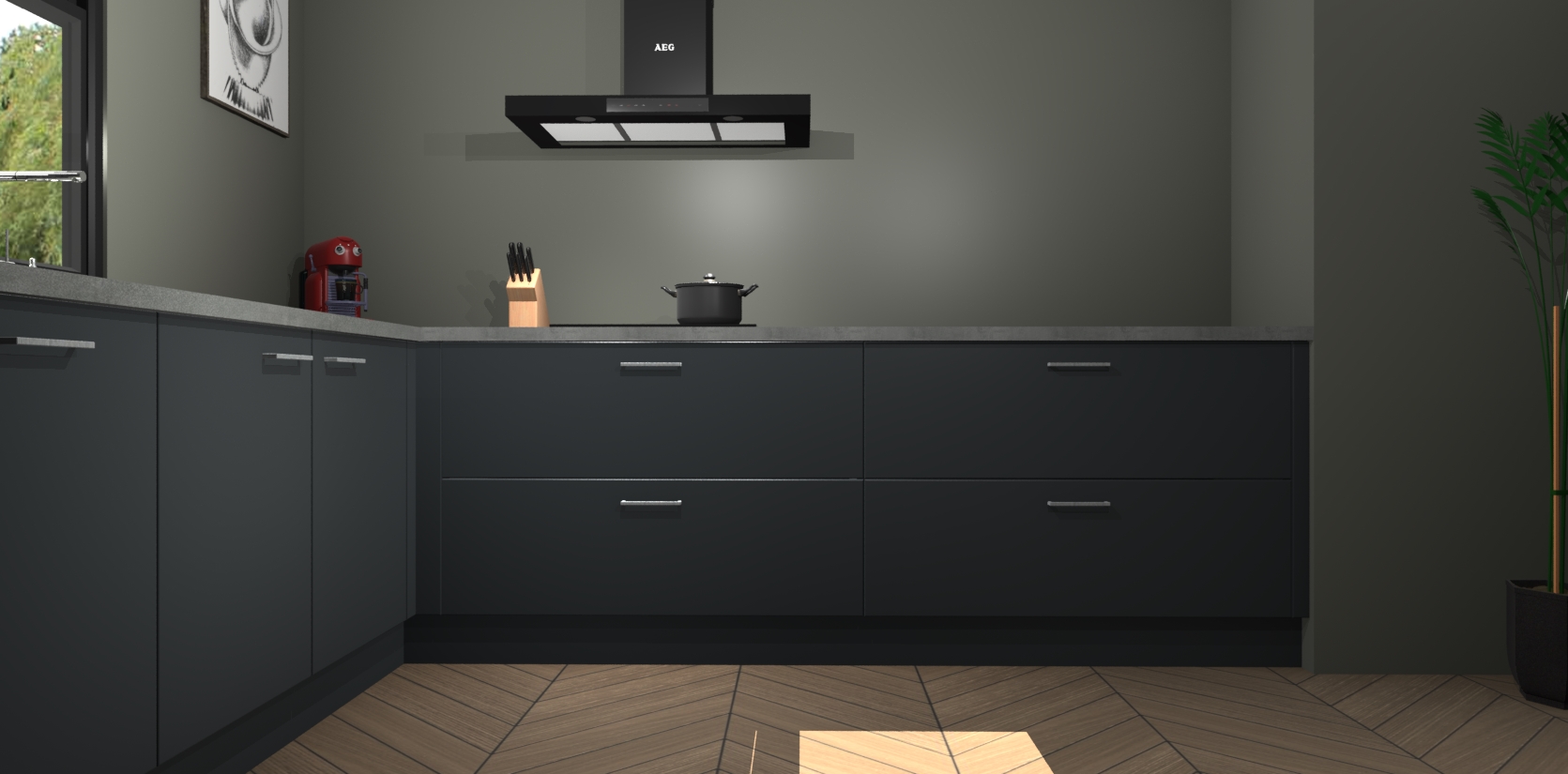 Inclusief plinten, stelpoten en werkblad