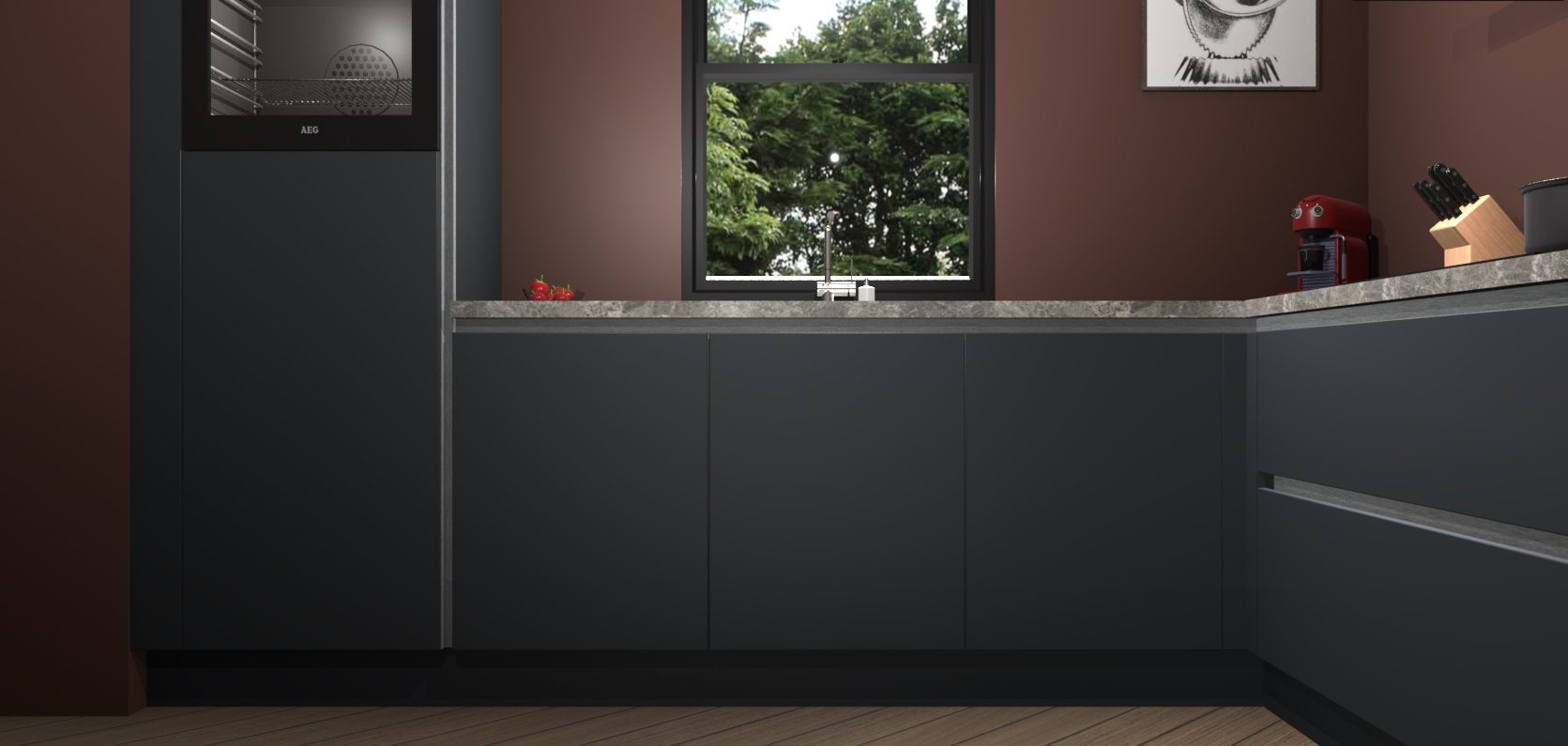 Welkom bij de onyxgrijze keuken Lublin. Deze prachtige keuken zal de komende jaren het middelpunt van de belangstelling in uw huis zijn. Uitgerust met vijf inbouwapparaten komt u nooit kookgereedschap tekort. Bovendien geeft de warme houtlook elke ruimte een uitnodigende en tijdloze uitstraling.