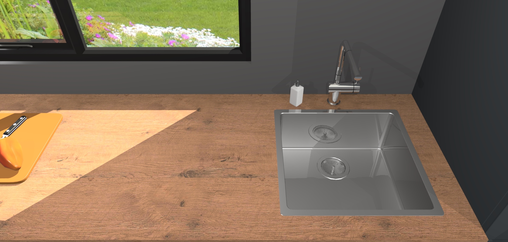 • De spoelbak is nog niet in gevreesd. Dit dient tijdens het werk gedaan te worden