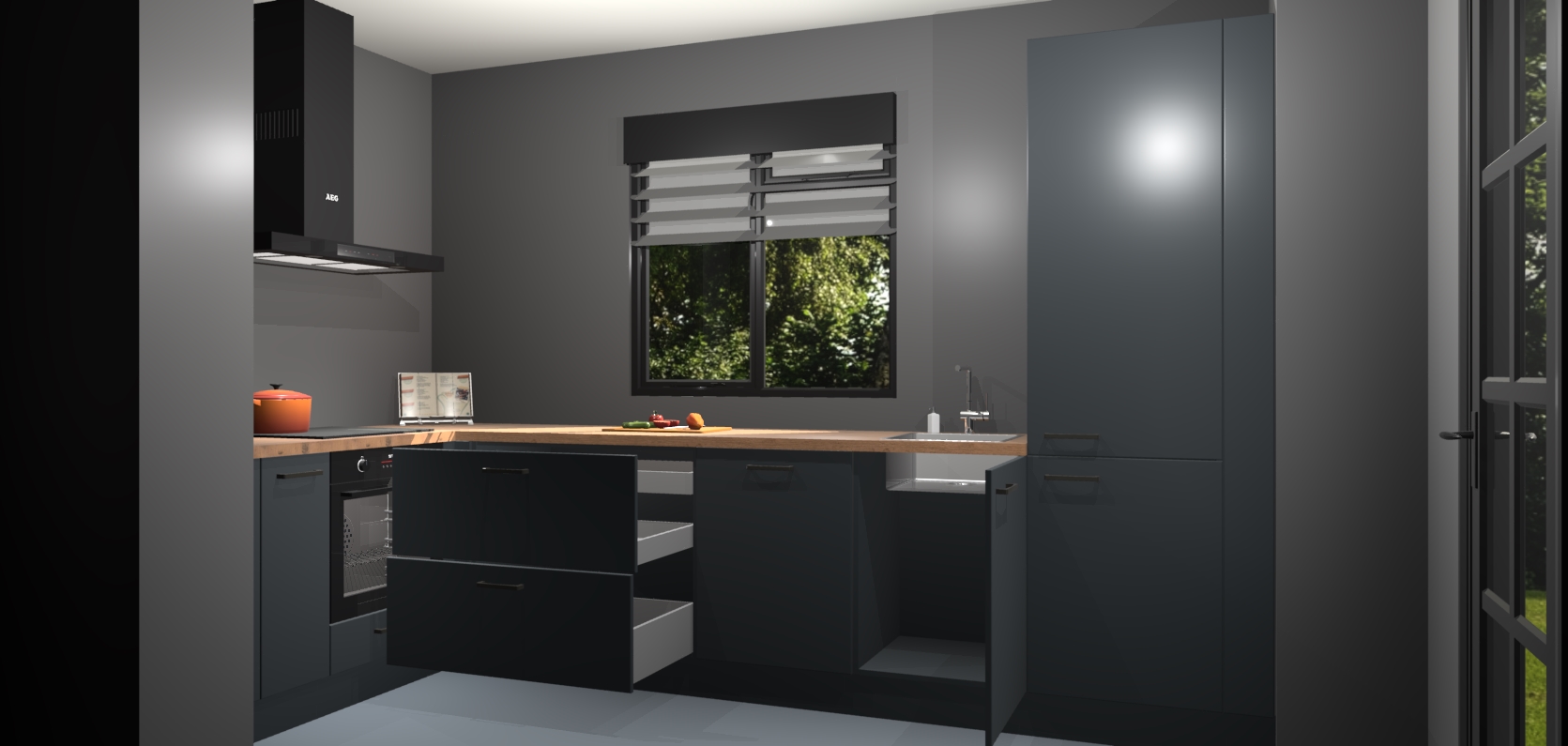 Moedige modernisten! De onyxgrijze keuken Luzern is het perfecte antwoord op al uw keukendromen. Dit geraffineerde, tijdloze ontwerp combineert strakke kasten zodat u die dure look krijgt zonder het dure prijskaartje. We weten dat planning en uitvoering de sleutels zijn tot een geslaagde keukenrenovatie, dus hebben we ervoor gezorgd dat we vijf inbouwapparaten in ons pakket hebben: een oven, inductiekookplaat, afzuigkap, vaatwasser en koelkast. Deze kunnen na bestelling gemakkelijk worden uitgebreid voor nog meer gemak.