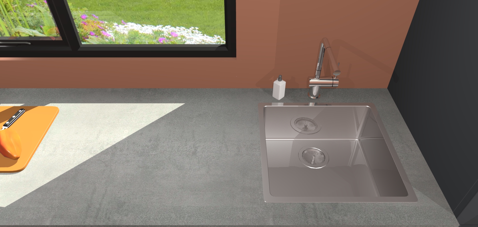- De spoelbak is nog niet in gevreesd. Dit dient tijdens het werk gedaan te worden