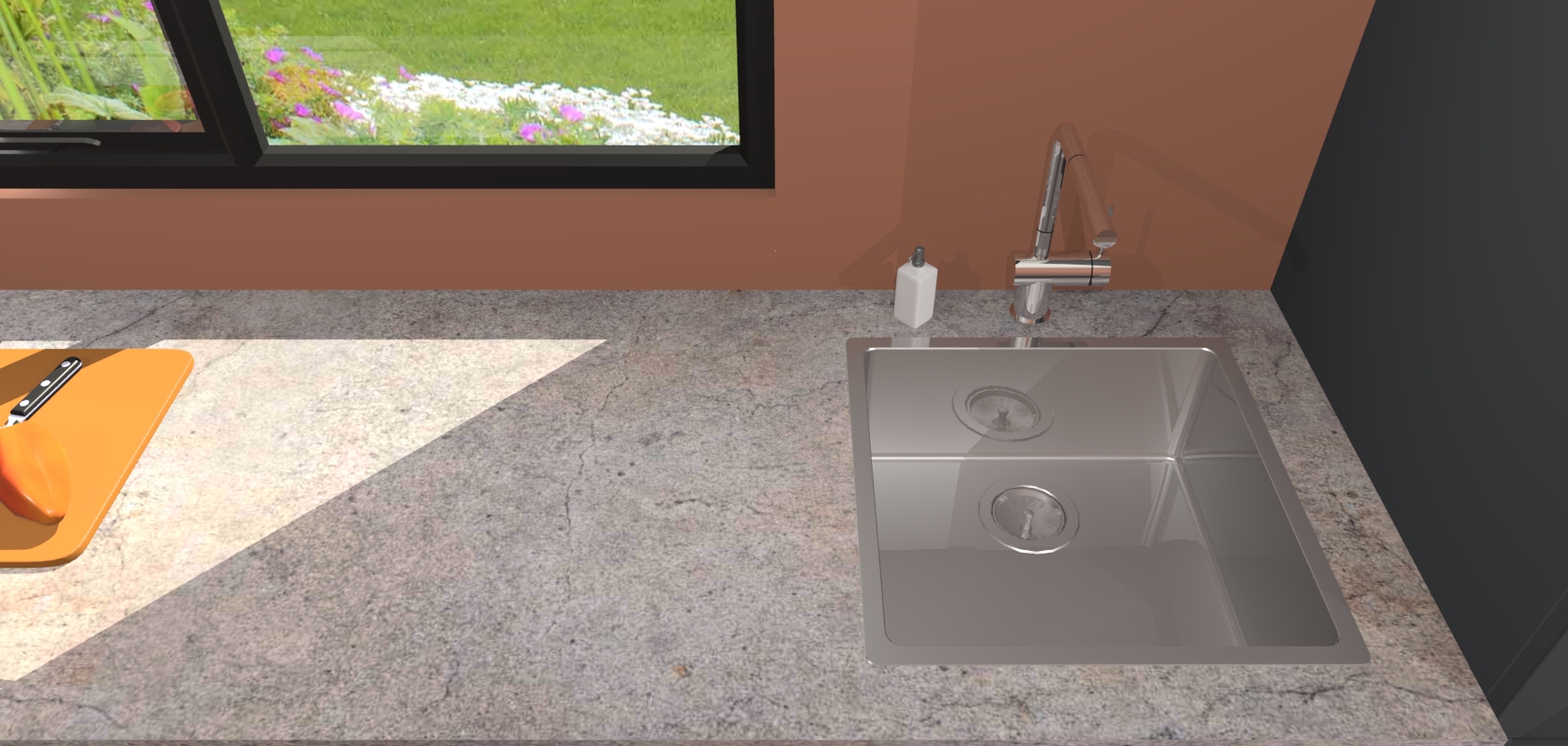 - De spoelbak is nog niet in gevreesd. Dit dient tijdens het werk gedaan te worden