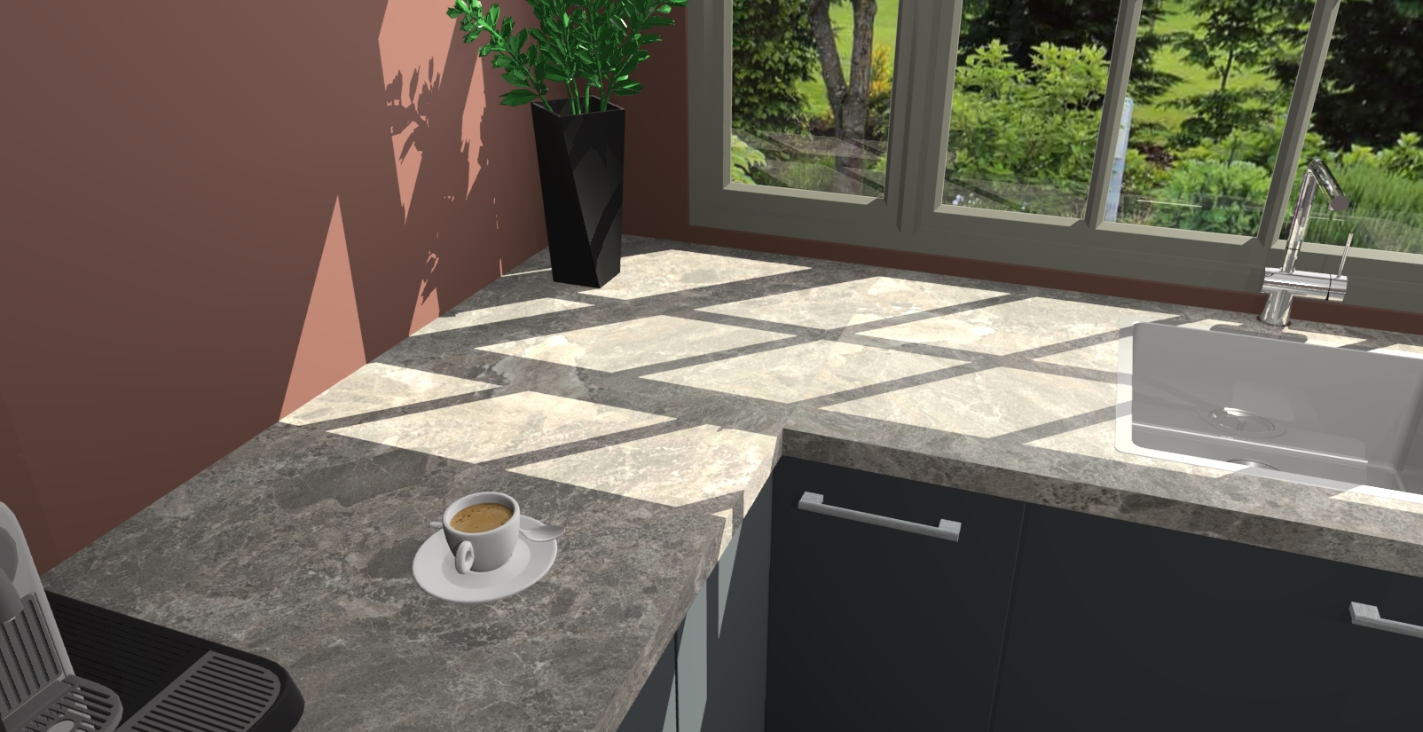 - Bij een hoekwerkblad zijn de hoeken in gevreesd en op maat gemaakt