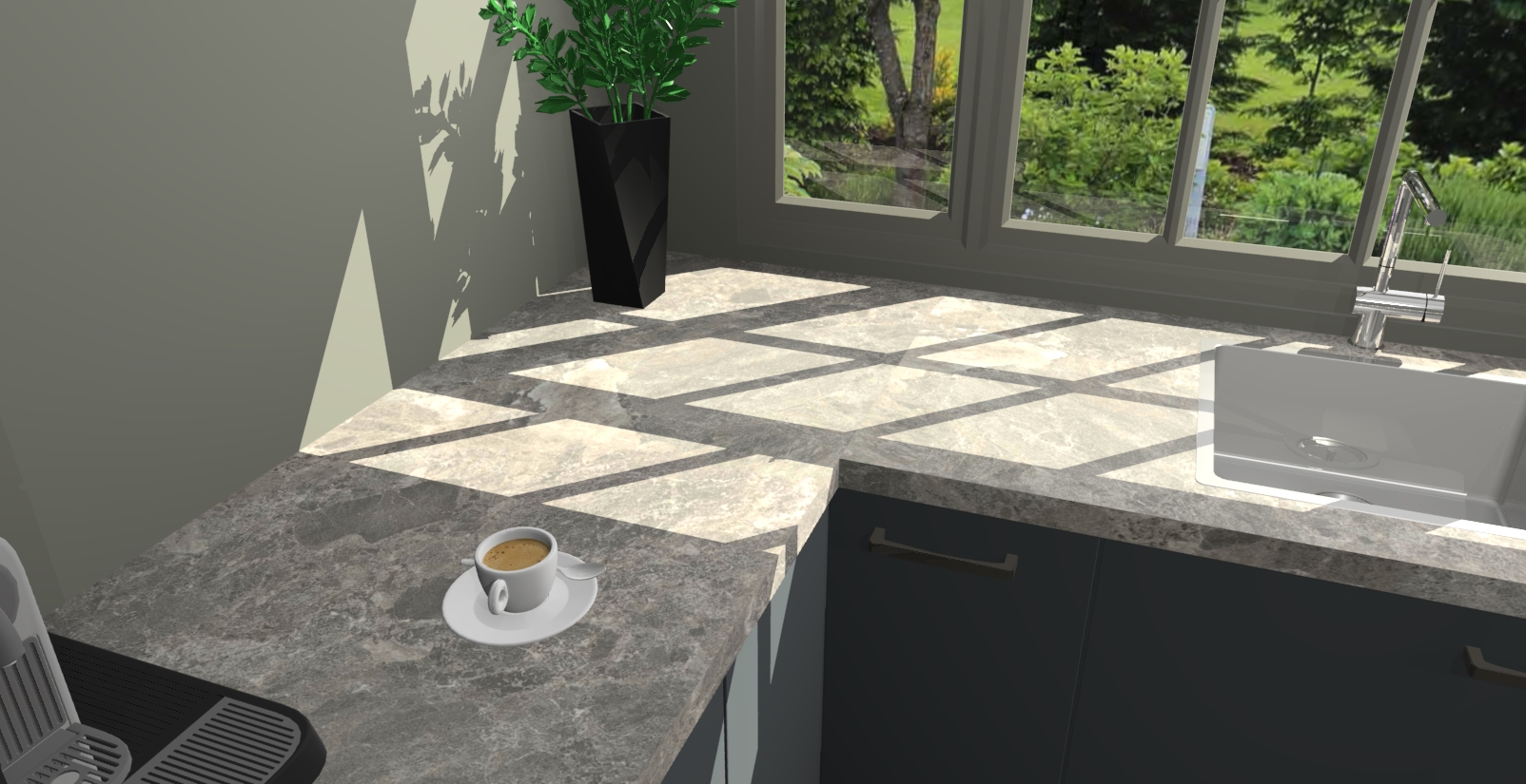 - Bij een hoekwerkblad zijn de hoeken in gevreesd en op maat gemaakt