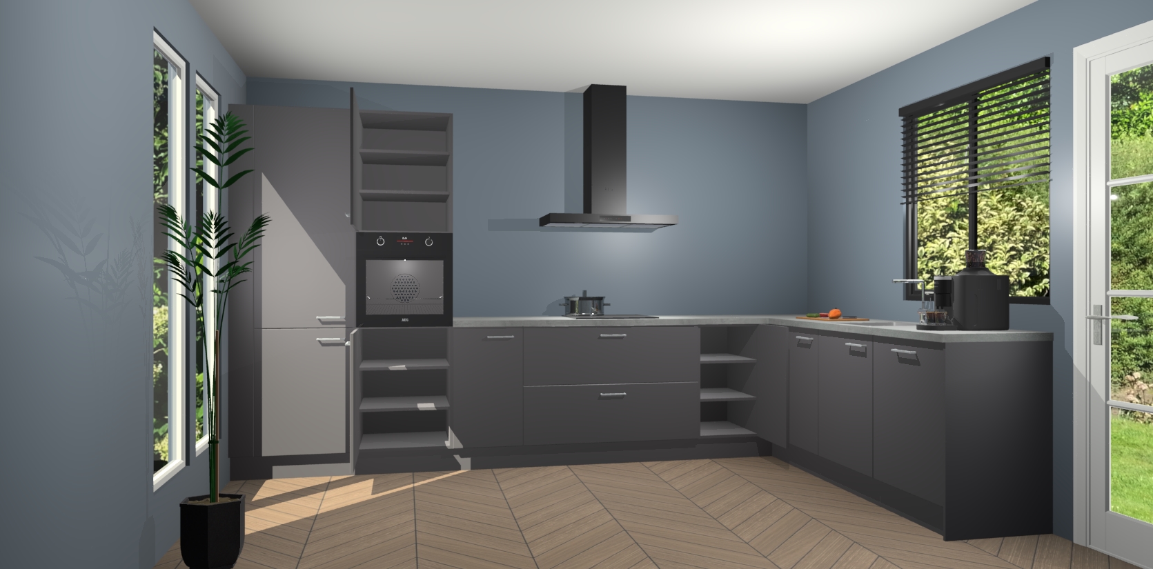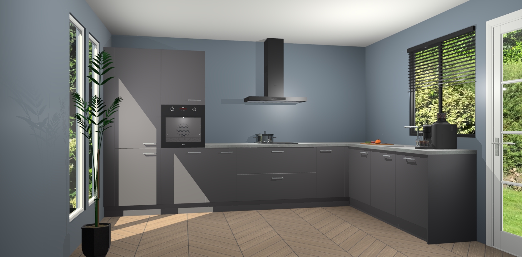 Met een modern, tijdloos design en ruime opslagruimte, zult u zich in no-time thuis voelen in uw nieuwe keuken. Uw leven wordt eenvoudiger met de soft-close deuren die voor het ultieme stille comfort zorgen - geen geluid dat u stoort terwijl u kookt. Ook is de keuken voorzien van 5 ingebouwde apparaten: een oven, inductie kookplaat, afzuigkap, vaatwasser en koelkast. Deze kunnen gemakkelijk na bestelling worden bijgewerkt naar AEG - waardoor uw luxe ervaring compleet is.