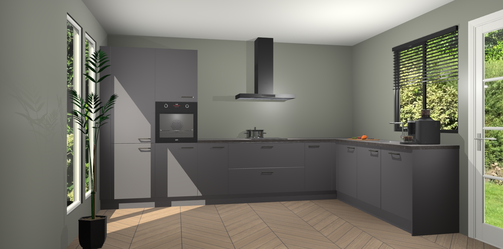 Met een modern, tijdloos design en ruime opslagruimte, zult u zich in no-time thuis voelen in uw nieuwe keuken. Uw leven wordt eenvoudiger met de soft-close deuren die voor het ultieme stille comfort zorgen - geen geluid dat u stoort terwijl u kookt. Ook is de keuken voorzien van 5 ingebouwde apparaten: een oven, inductie kookplaat, afzuigkap, vaatwasser en koelkast. Deze kunnen gemakkelijk na bestelling worden bijgewerkt naar AEG - waardoor uw luxe ervaring compleet is.