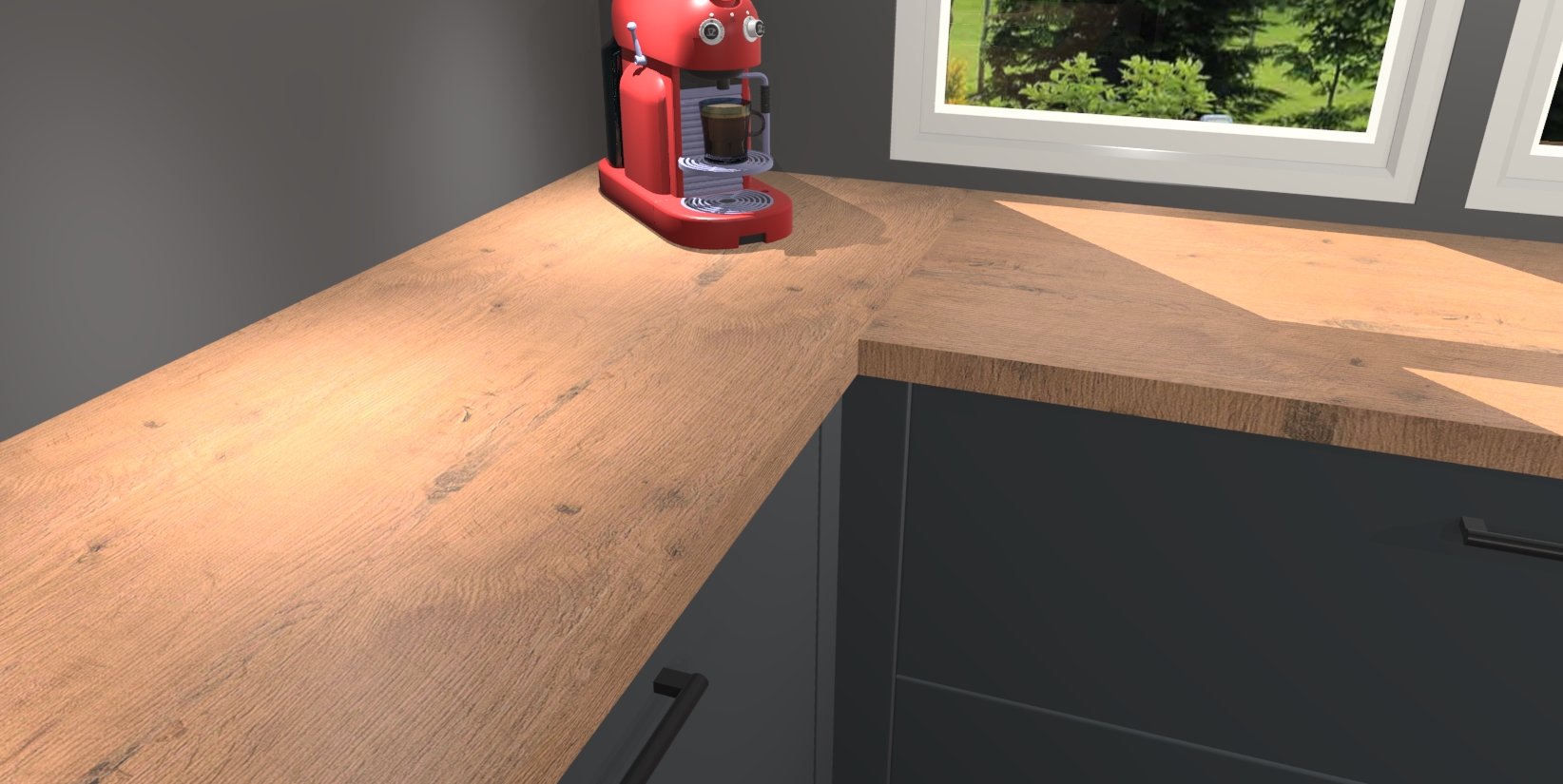 - Bij een hoekwerkblad zijn de hoeken in gevreesd en op maat gemaakt
