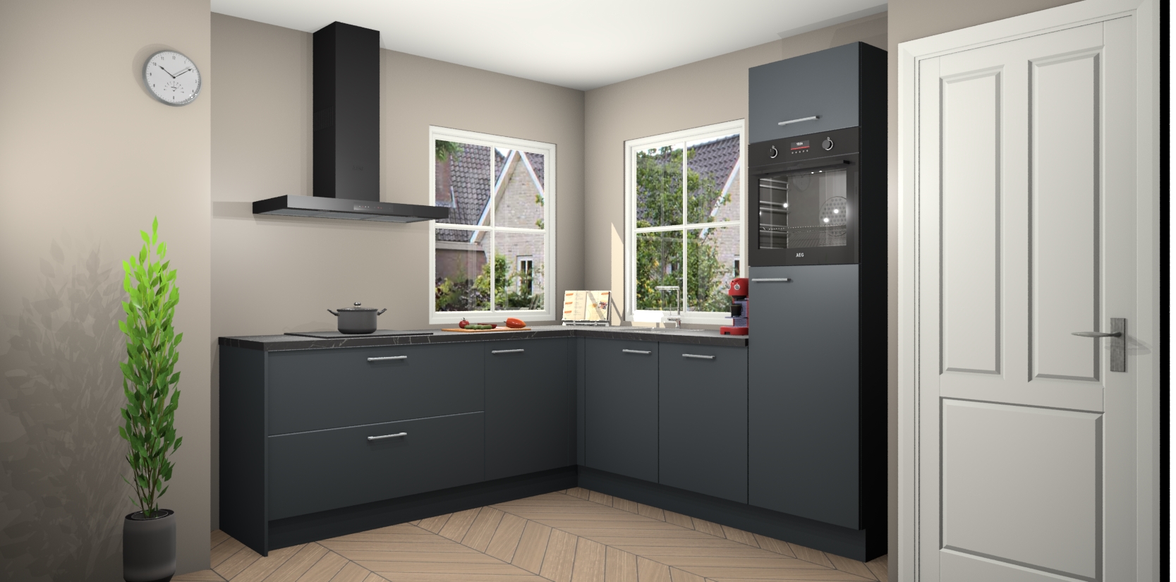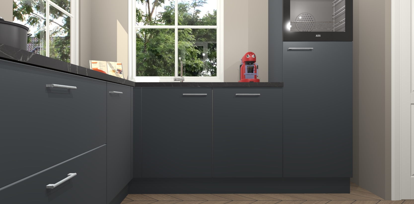 De Onyxgrijze keuken Pai bevat vijf essentiële inbouwapparaten - een oven, inductiekookplaat, afzuigkap, vaatwasser en koelkast - zodat u er na levering meteen in kunt. Voor de slimme kopers die weten dat apparaten vaak het verschil kunnen maken tussen functioneel en luxueus, bieden we eenvoudige upgradeopties naar AEG, van oven naar combimagnetron na bestelling of naar een kookplaat met geïntrigeerde afzuiging. En met onze vaste lage prijs en snelle levering binnen zeven weken vanaf de orderbevestiging hoeft u zich geen zorgen te maken over verborgen kosten of lange levertijden die uw droomkeuken kunnen vertragen.