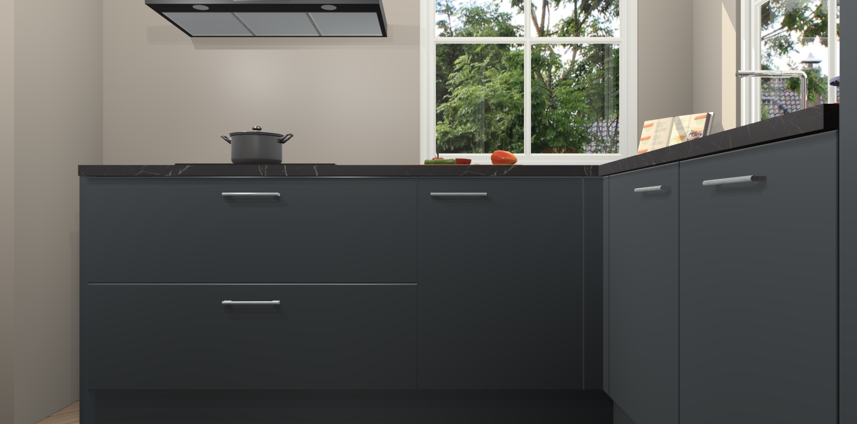 In deze box zijn alle kleuren verzameld van de deuren en werkbladen. Vraag de gratis kleurenbox aan en kijk thuis rustig verder!