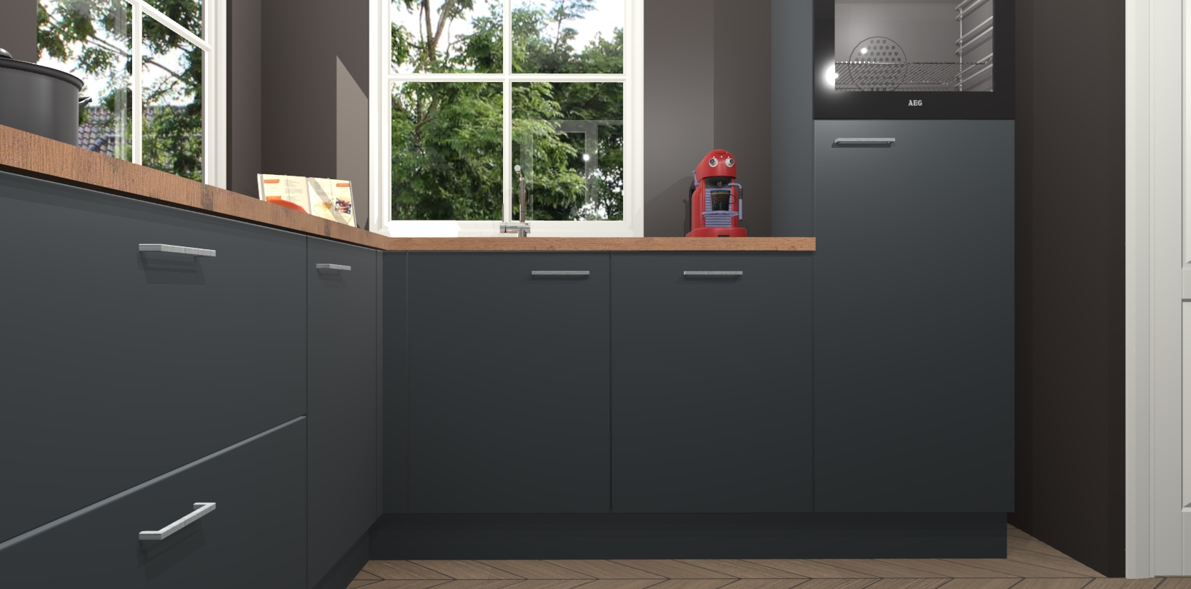 De Onyxgrijze keuken Pai bevat vijf essentiële inbouwapparaten - een oven, inductiekookplaat, afzuigkap, vaatwasser en koelkast - zodat u er na levering meteen in kunt. Voor de slimme kopers die weten dat apparaten vaak het verschil kunnen maken tussen functioneel en luxueus, bieden we eenvoudige upgradeopties naar AEG, van oven naar combimagnetron na bestelling of naar een kookplaat met geïntrigeerde afzuiging. En met onze vaste lage prijs en snelle levering binnen zeven weken vanaf de orderbevestiging hoeft u zich geen zorgen te maken over verborgen kosten of lange levertijden die uw droomkeuken kunnen vertragen.