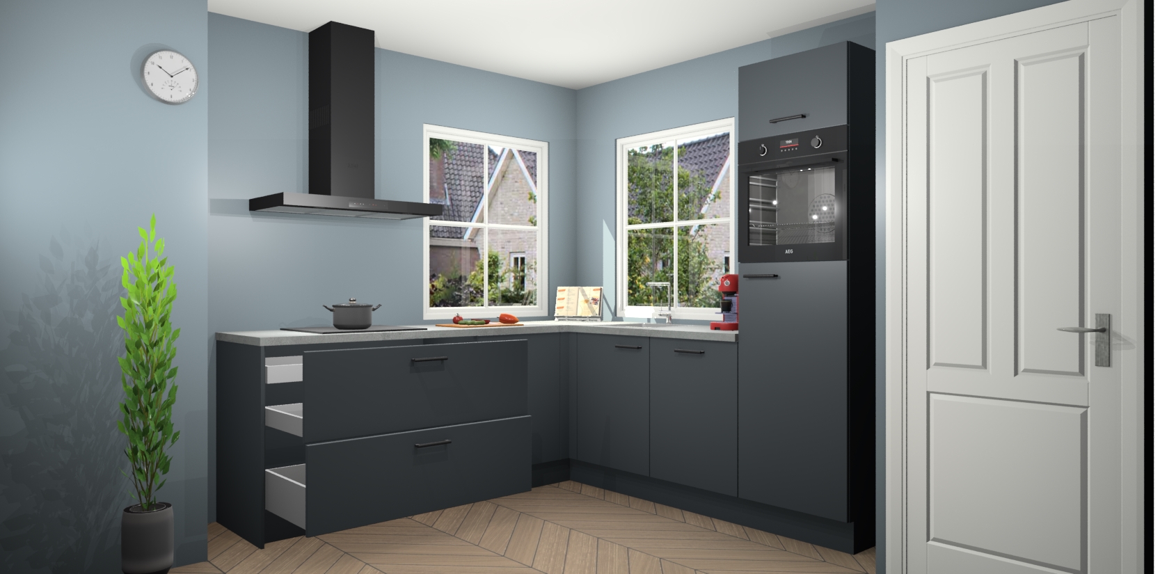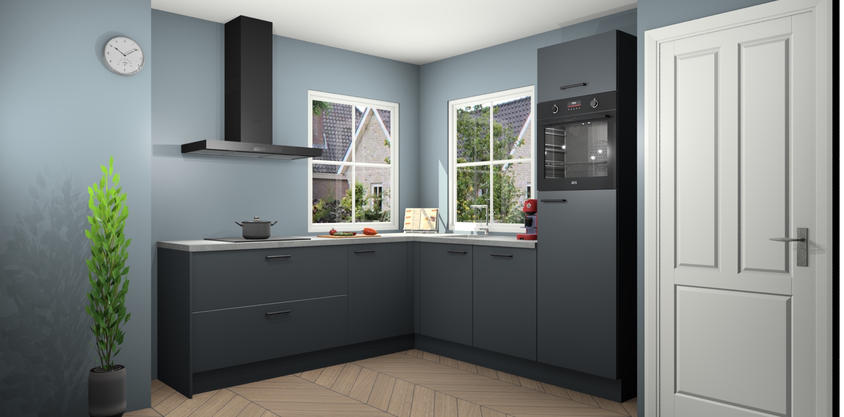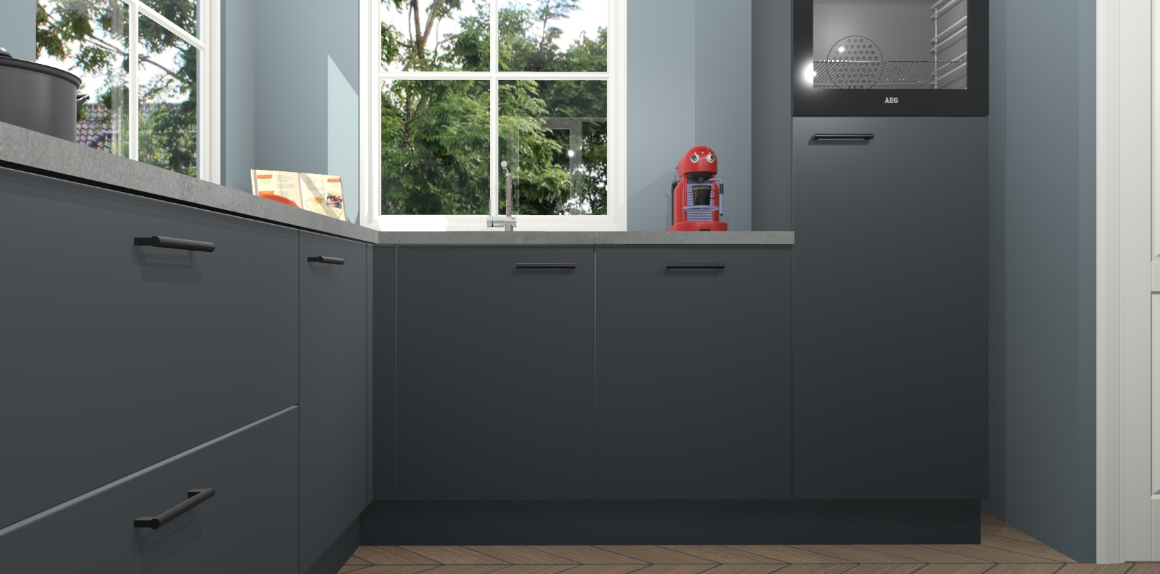 De Onyxgrijze keuken Pai bevat vijf essentiële inbouwapparaten - een oven, inductiekookplaat, afzuigkap, vaatwasser en koelkast - zodat u er na levering meteen in kunt. Voor de slimme kopers die weten dat apparaten vaak het verschil kunnen maken tussen functioneel en luxueus, bieden we eenvoudige upgradeopties naar AEG, van oven naar combimagnetron na bestelling of naar een kookplaat met geïntrigeerde afzuiging. En met onze vaste lage prijs en snelle levering binnen zeven weken vanaf de orderbevestiging hoeft u zich geen zorgen te maken over verborgen kosten of lange levertijden die uw droomkeuken kunnen vertragen.