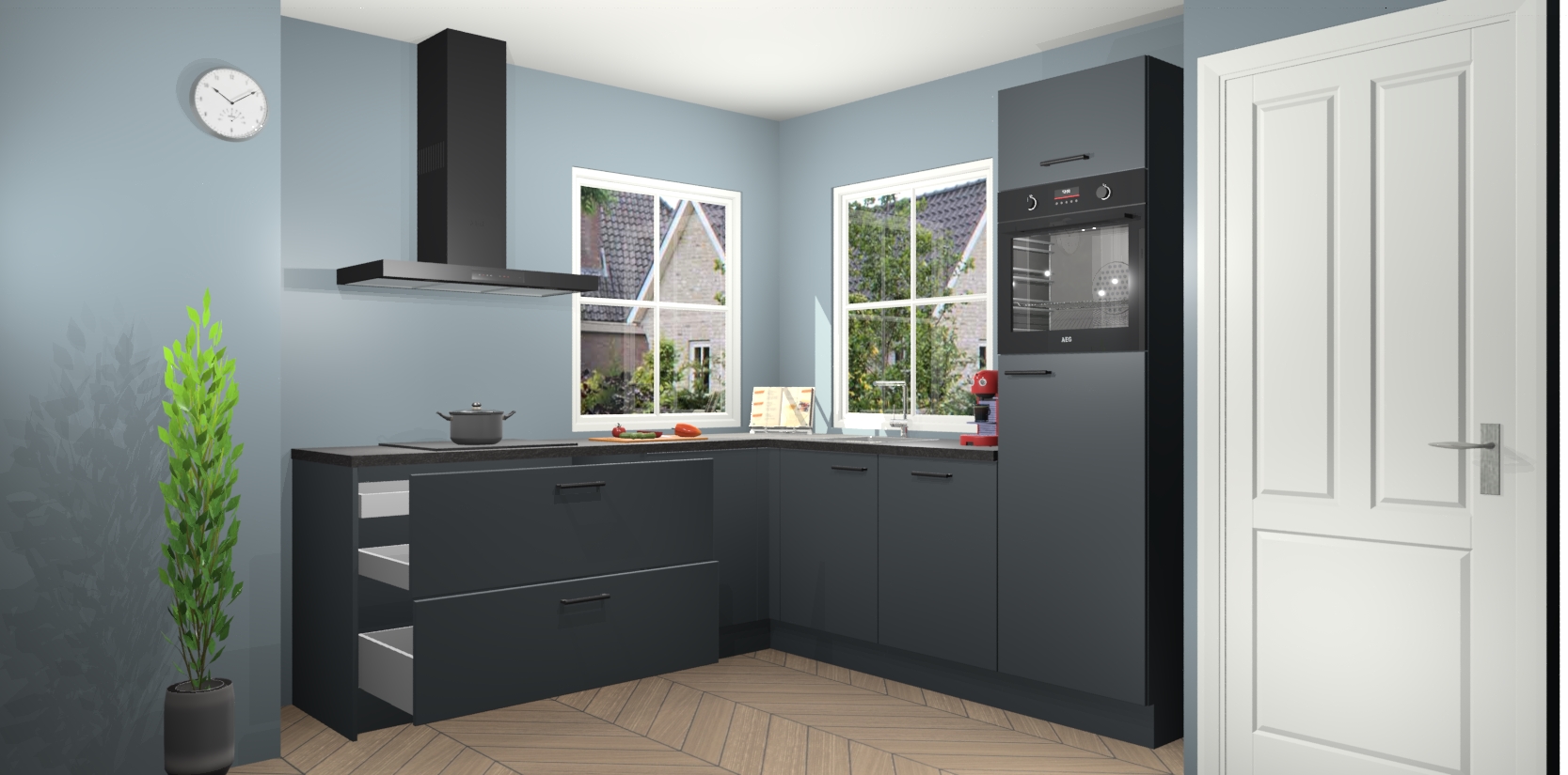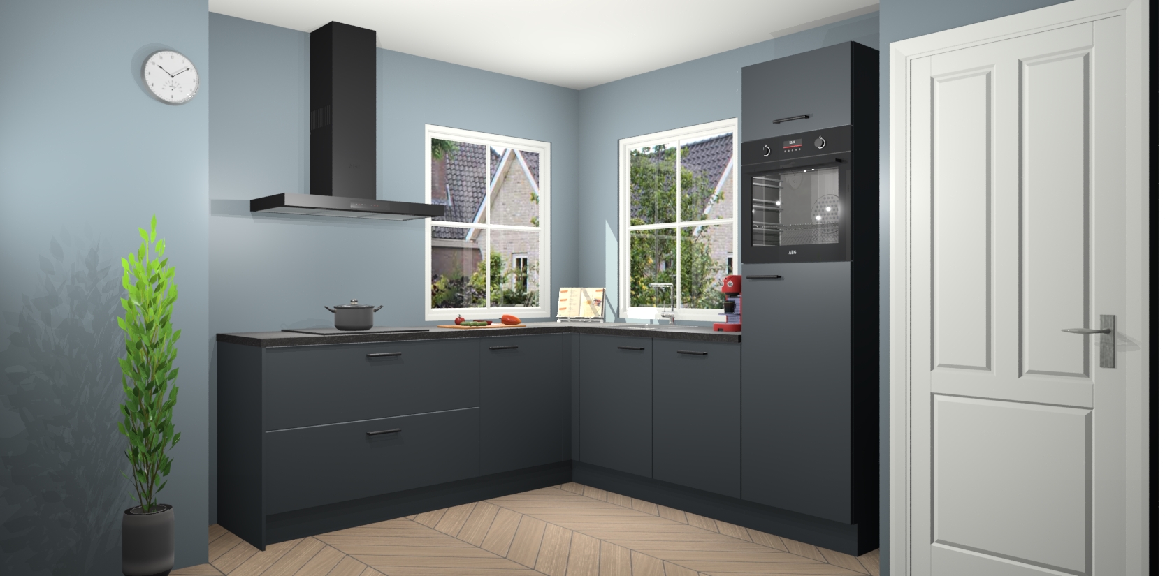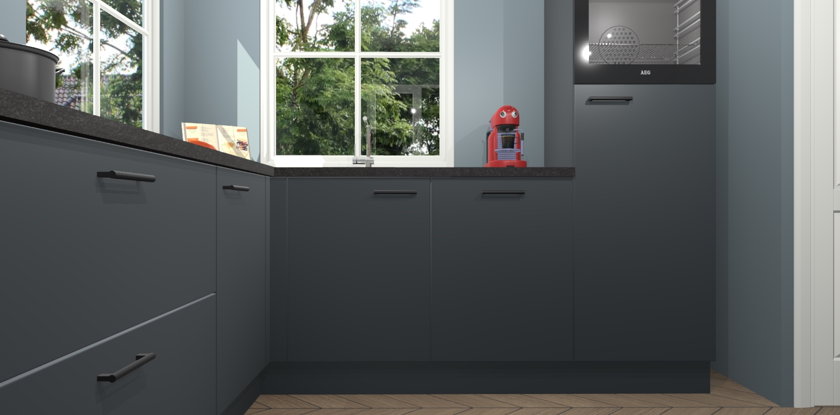 De Onyxgrijze keuken Pai bevat vijf essentiële inbouwapparaten - een oven, inductiekookplaat, afzuigkap, vaatwasser en koelkast - zodat u er na levering meteen in kunt. Voor de slimme kopers die weten dat apparaten vaak het verschil kunnen maken tussen functioneel en luxueus, bieden we eenvoudige upgradeopties naar AEG, van oven naar combimagnetron na bestelling of naar een kookplaat met geïntrigeerde afzuiging. En met onze vaste lage prijs en snelle levering binnen zeven weken vanaf de orderbevestiging hoeft u zich geen zorgen te maken over verborgen kosten of lange levertijden die uw droomkeuken kunnen vertragen.