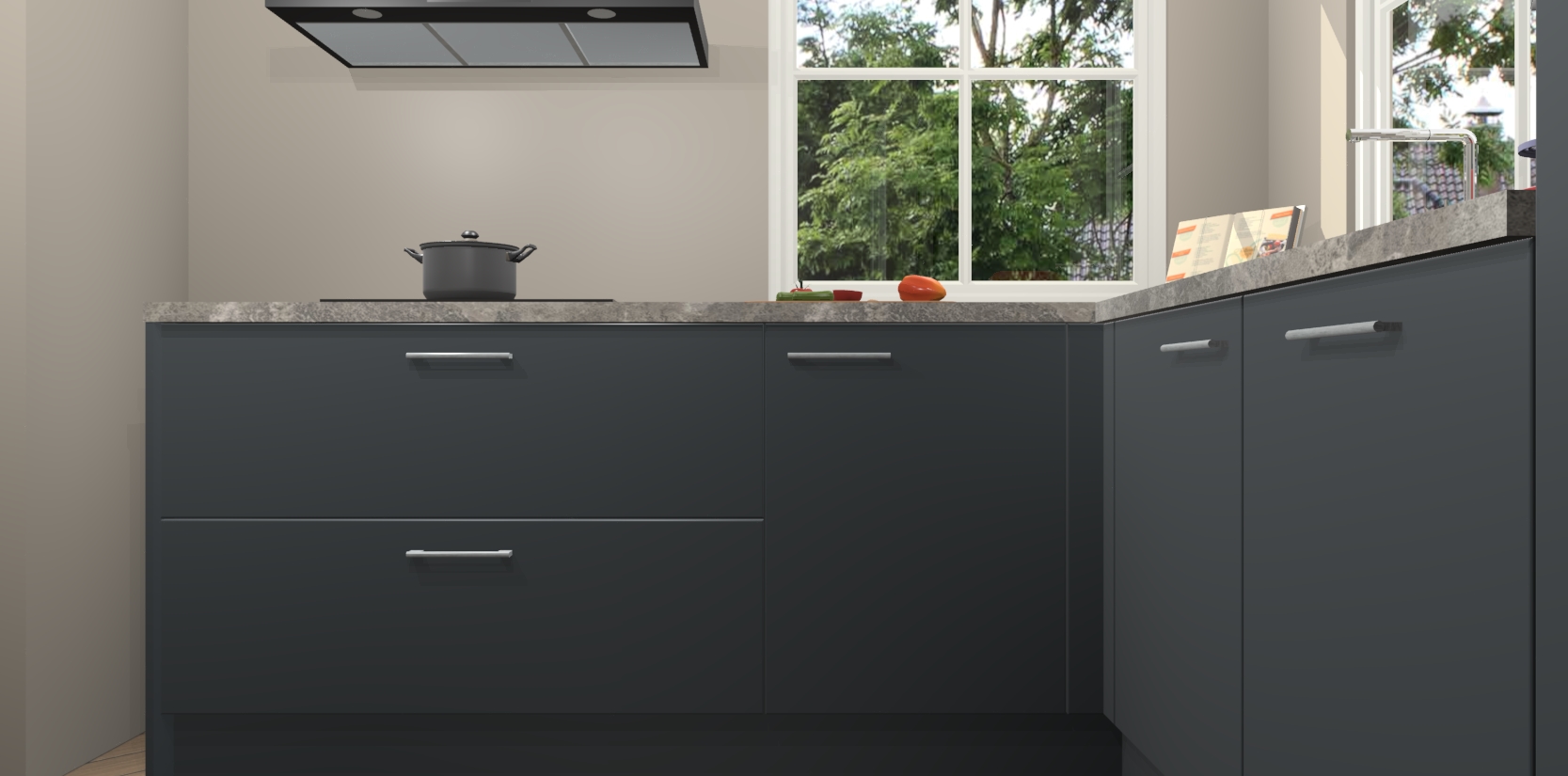 In deze box zijn alle kleuren verzameld van de deuren en werkbladen. Vraag de gratis kleurenbox aan en kijk thuis rustig verder!