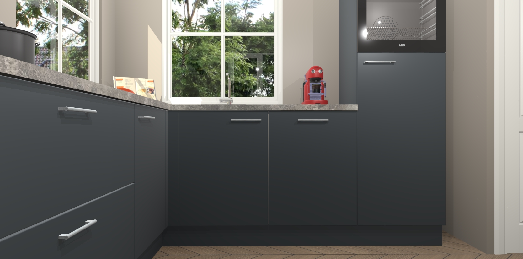 De Onyxgrijze keuken Pai bevat vijf essentiële inbouwapparaten - een oven, inductiekookplaat, afzuigkap, vaatwasser en koelkast - zodat u er na levering meteen in kunt. Voor de slimme kopers die weten dat apparaten vaak het verschil kunnen maken tussen functioneel en luxueus, bieden we eenvoudige upgradeopties naar AEG, van oven naar combimagnetron na bestelling of naar een kookplaat met geïntrigeerde afzuiging. En met onze vaste lage prijs en snelle levering binnen zeven weken vanaf de orderbevestiging hoeft u zich geen zorgen te maken over verborgen kosten of lange levertijden die uw droomkeuken kunnen vertragen.