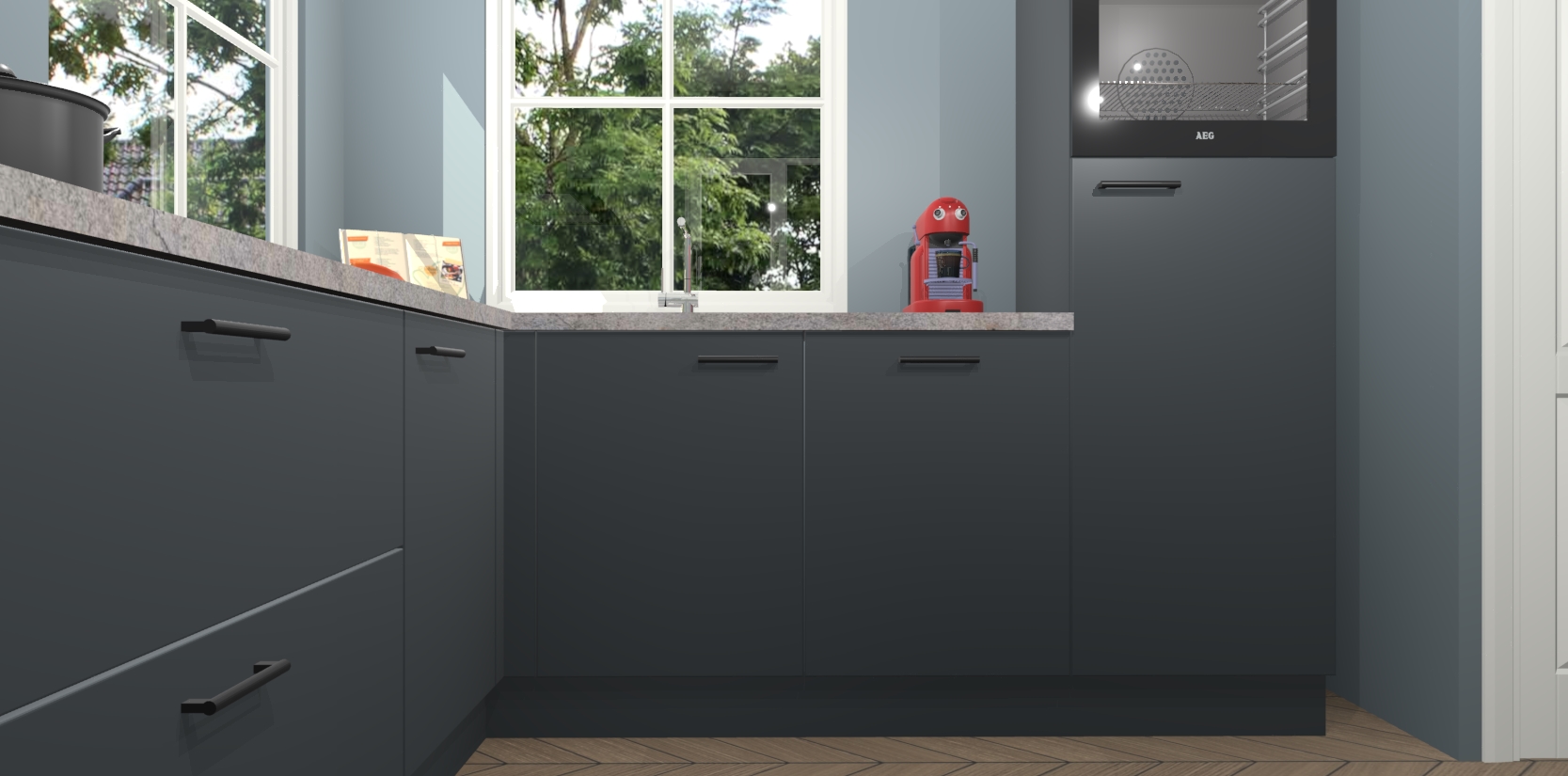 De Onyxgrijze keuken Pai bevat vijf essentiële inbouwapparaten - een oven, inductiekookplaat, afzuigkap, vaatwasser en koelkast - zodat u er na levering meteen in kunt. Voor de slimme kopers die weten dat apparaten vaak het verschil kunnen maken tussen functioneel en luxueus, bieden we eenvoudige upgradeopties naar AEG, van oven naar combimagnetron na bestelling of naar een kookplaat met geïntrigeerde afzuiging. En met onze vaste lage prijs en snelle levering binnen zeven weken vanaf de orderbevestiging hoeft u zich geen zorgen te maken over verborgen kosten of lange levertijden die uw droomkeuken kunnen vertragen.
