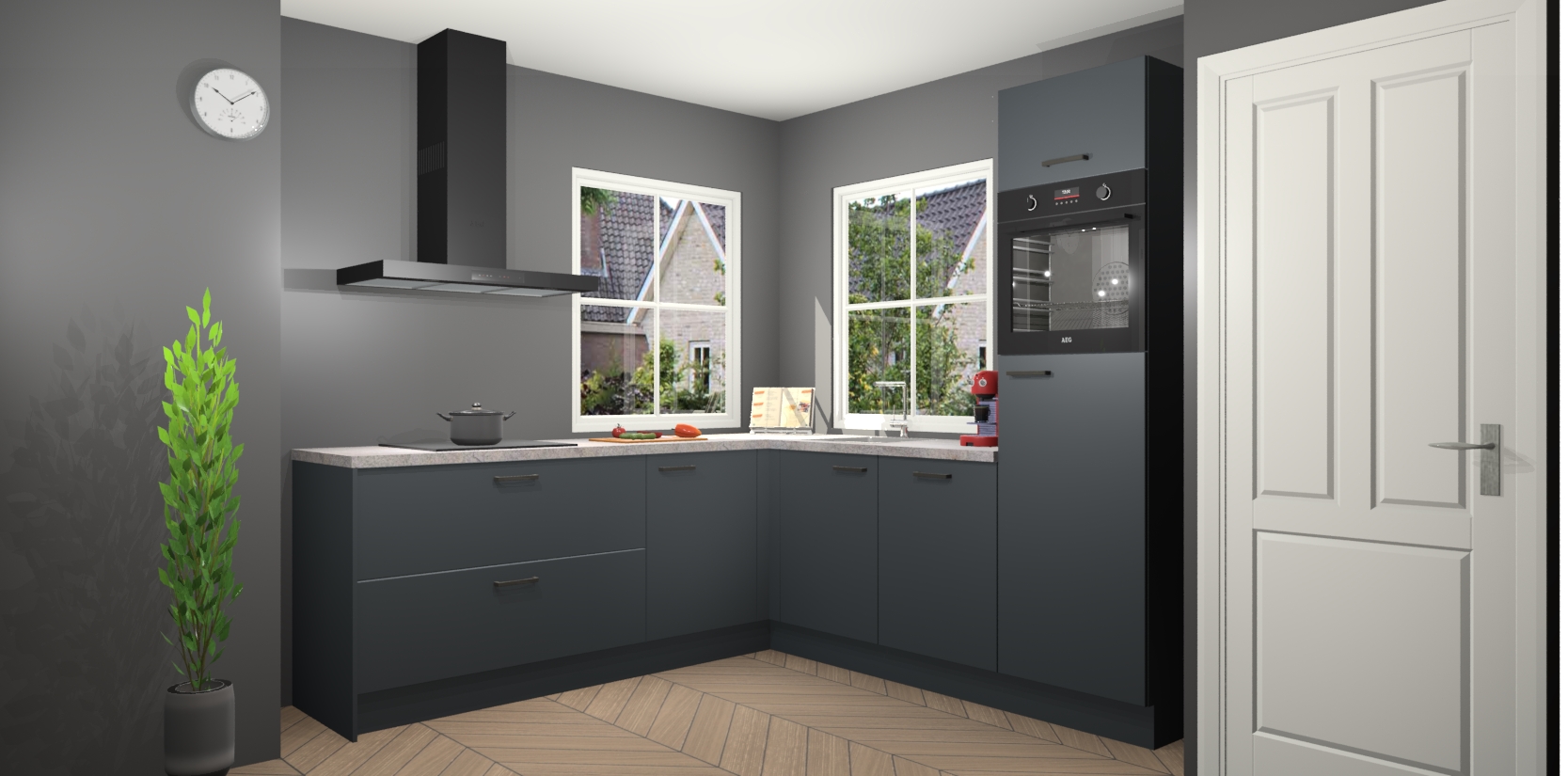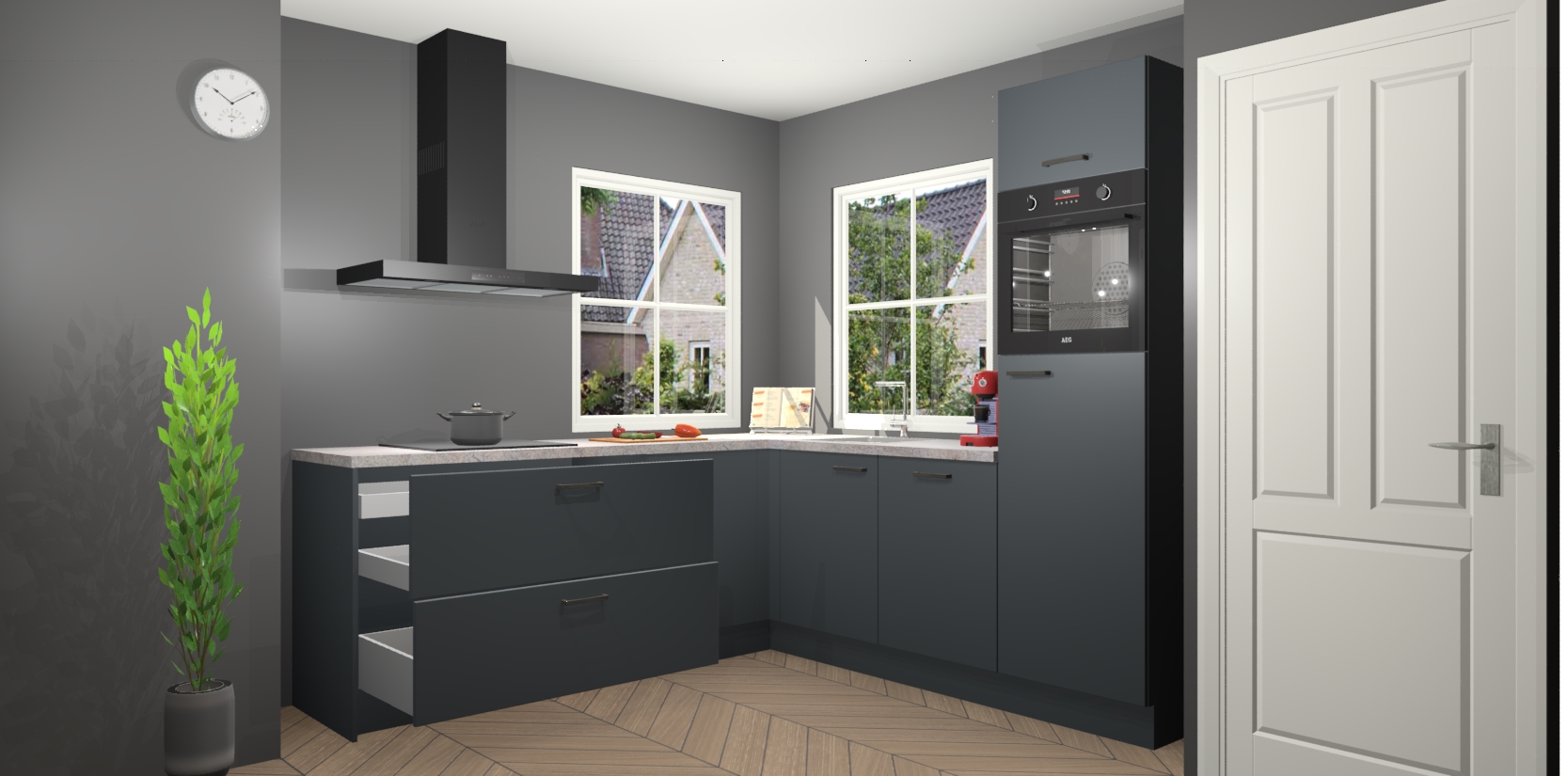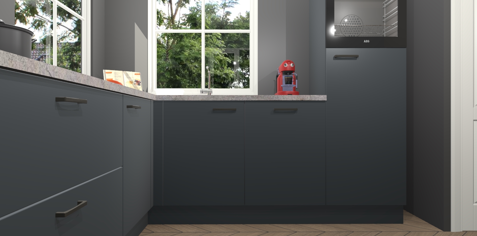De Onyxgrijze keuken Pai bevat vijf essentiële inbouwapparaten - een oven, inductiekookplaat, afzuigkap, vaatwasser en koelkast - zodat u er na levering meteen in kunt. Voor de slimme kopers die weten dat apparaten vaak het verschil kunnen maken tussen functioneel en luxueus, bieden we eenvoudige upgradeopties naar AEG, van oven naar combimagnetron na bestelling of naar een kookplaat met geïntrigeerde afzuiging. En met onze vaste lage prijs en snelle levering binnen zeven weken vanaf de orderbevestiging hoeft u zich geen zorgen te maken over verborgen kosten of lange levertijden die uw droomkeuken kunnen vertragen.