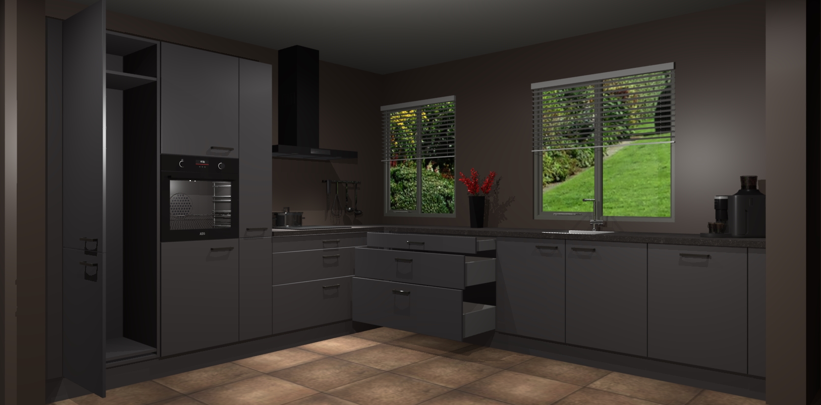 Welkom bij de Onyxgrijze keuken Palermo. Deze prachtige keuken zal de komende jaren het middelpunt van de belangstelling in uw huis zijn. Uitgerust met vijf inbouwapparaten komt u nooit kookgereedschap tekort. Bovendien geeft de warme houtlook elke ruimte een uitnodigende en tijdloze uitstraling.