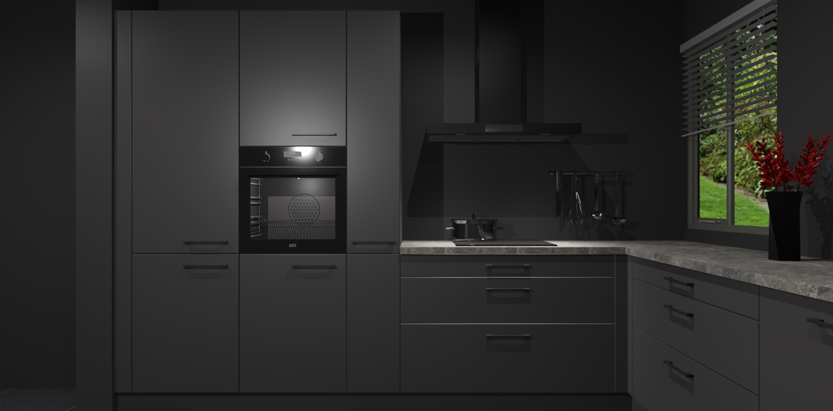 Welkom bij de Onyxgrijze keuken Palermo. Deze prachtige keuken zal de komende jaren het middelpunt van de belangstelling in uw huis zijn. Uitgerust met vijf inbouwapparaten komt u nooit kookgereedschap tekort. Bovendien geeft de warme houtlook elke ruimte een uitnodigende en tijdloze uitstraling.