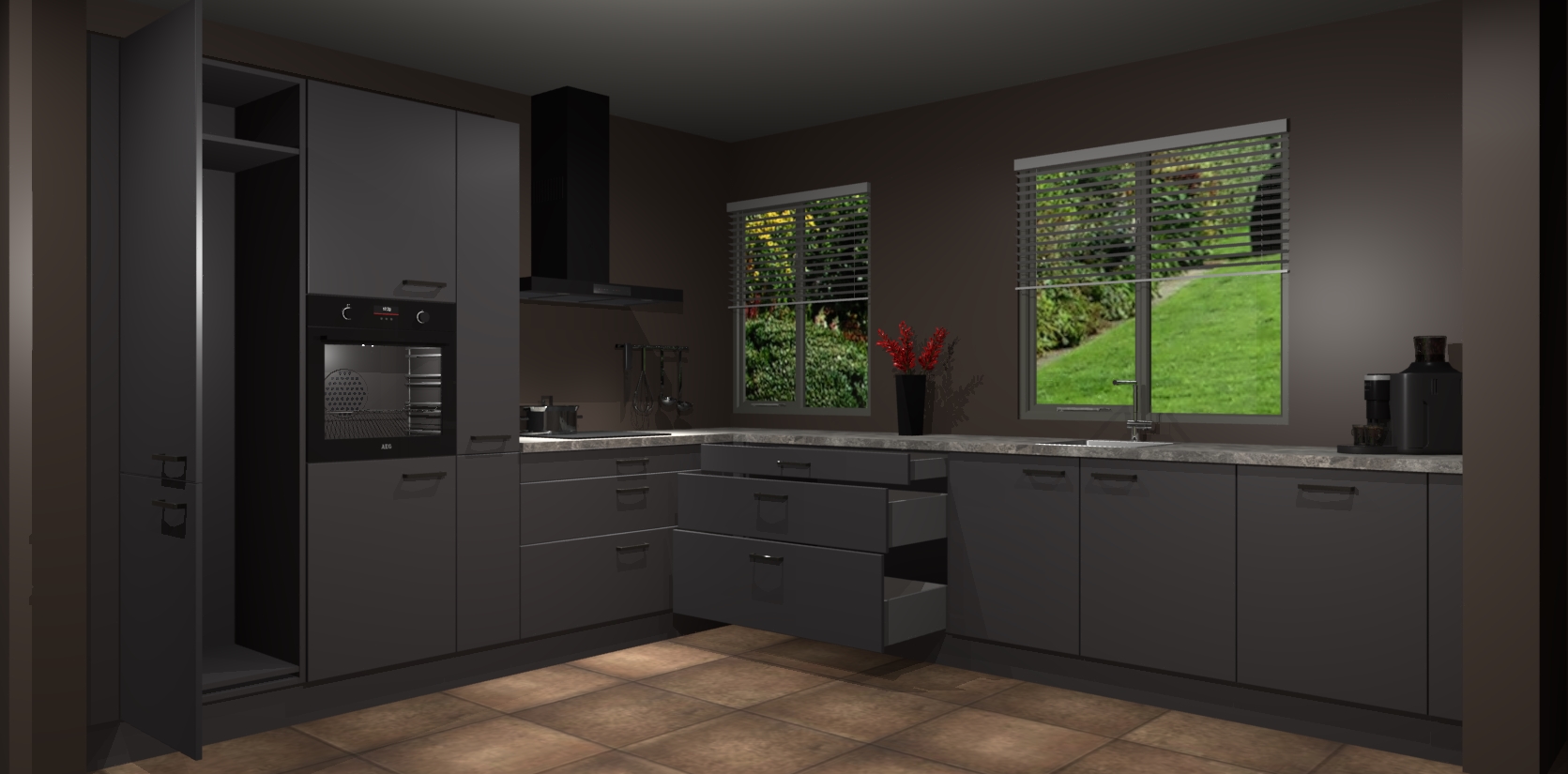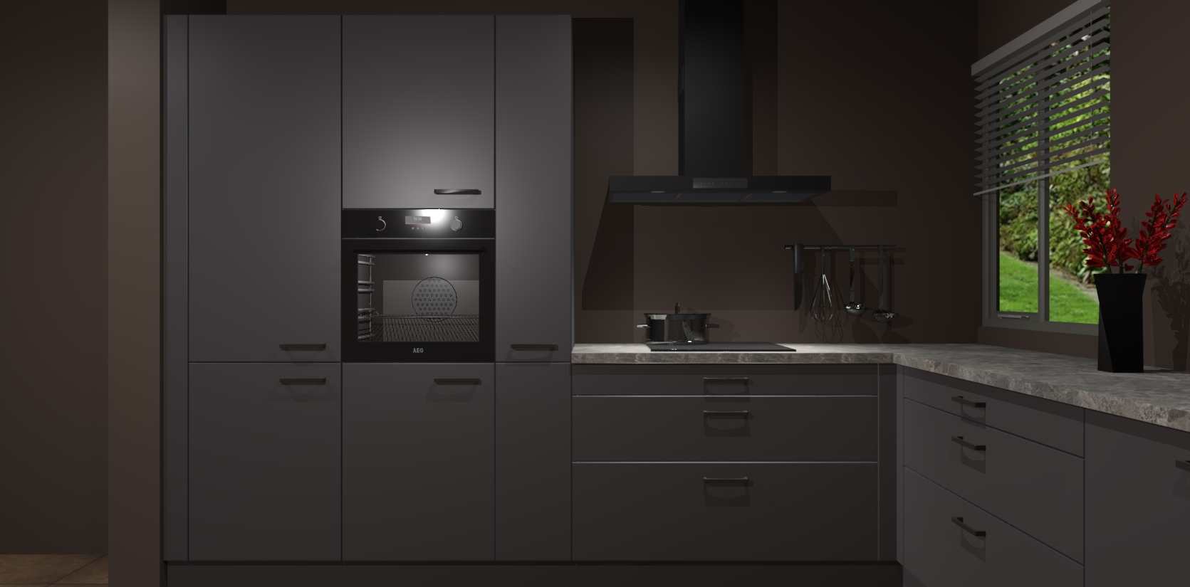 Welkom bij de Onyxgrijze keuken Palermo. Deze prachtige keuken zal de komende jaren het middelpunt van de belangstelling in uw huis zijn. Uitgerust met vijf inbouwapparaten komt u nooit kookgereedschap tekort. Bovendien geeft de warme houtlook elke ruimte een uitnodigende en tijdloze uitstraling.