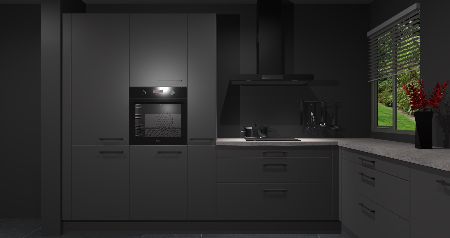 Welkom bij de Onyxgrijze keuken Palermo. Deze prachtige keuken zal de komende jaren het middelpunt van de belangstelling in uw huis zijn. Uitgerust met vijf inbouwapparaten komt u nooit kookgereedschap tekort. Bovendien geeft de warme houtlook elke ruimte een uitnodigende en tijdloze uitstraling.