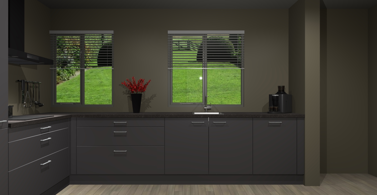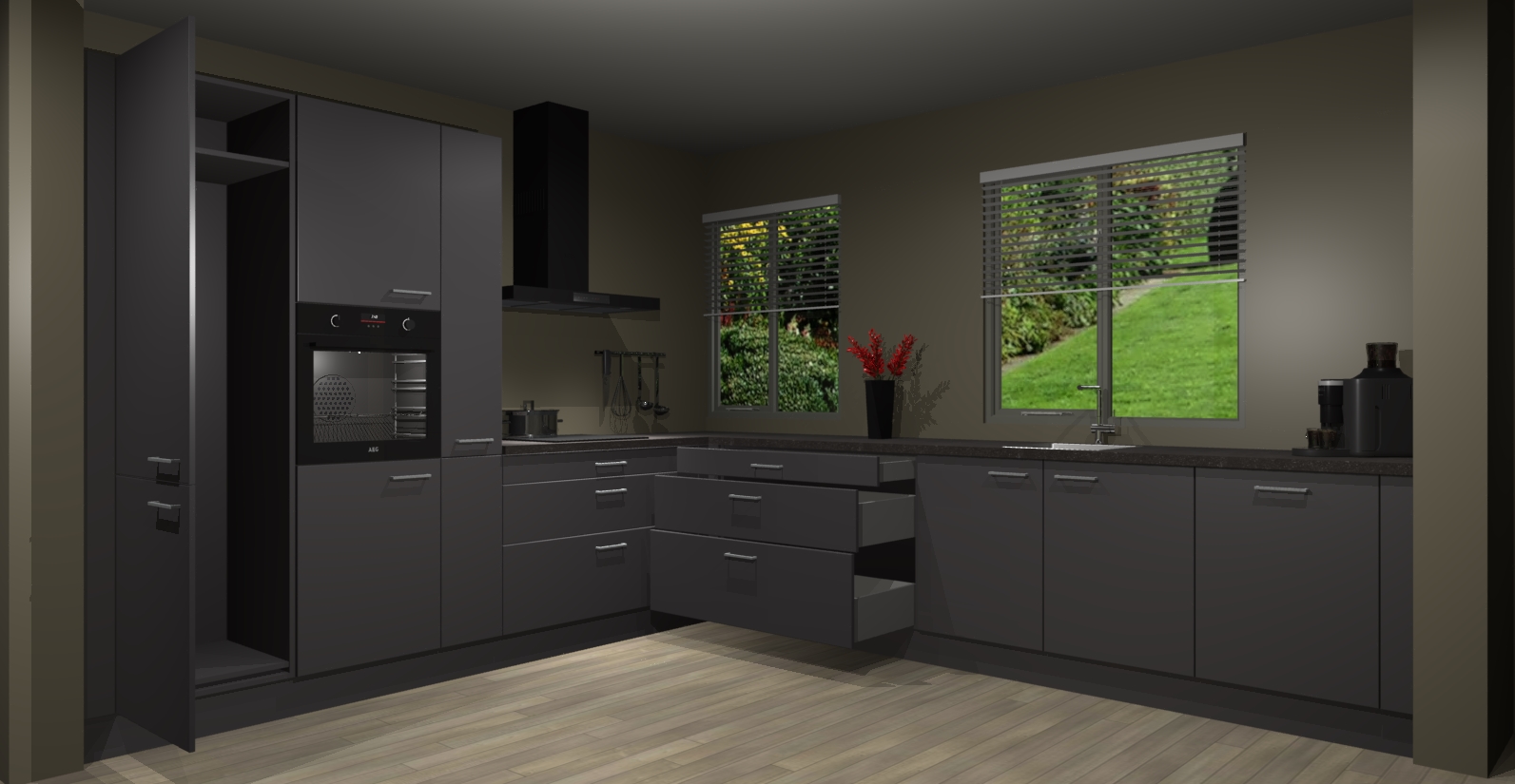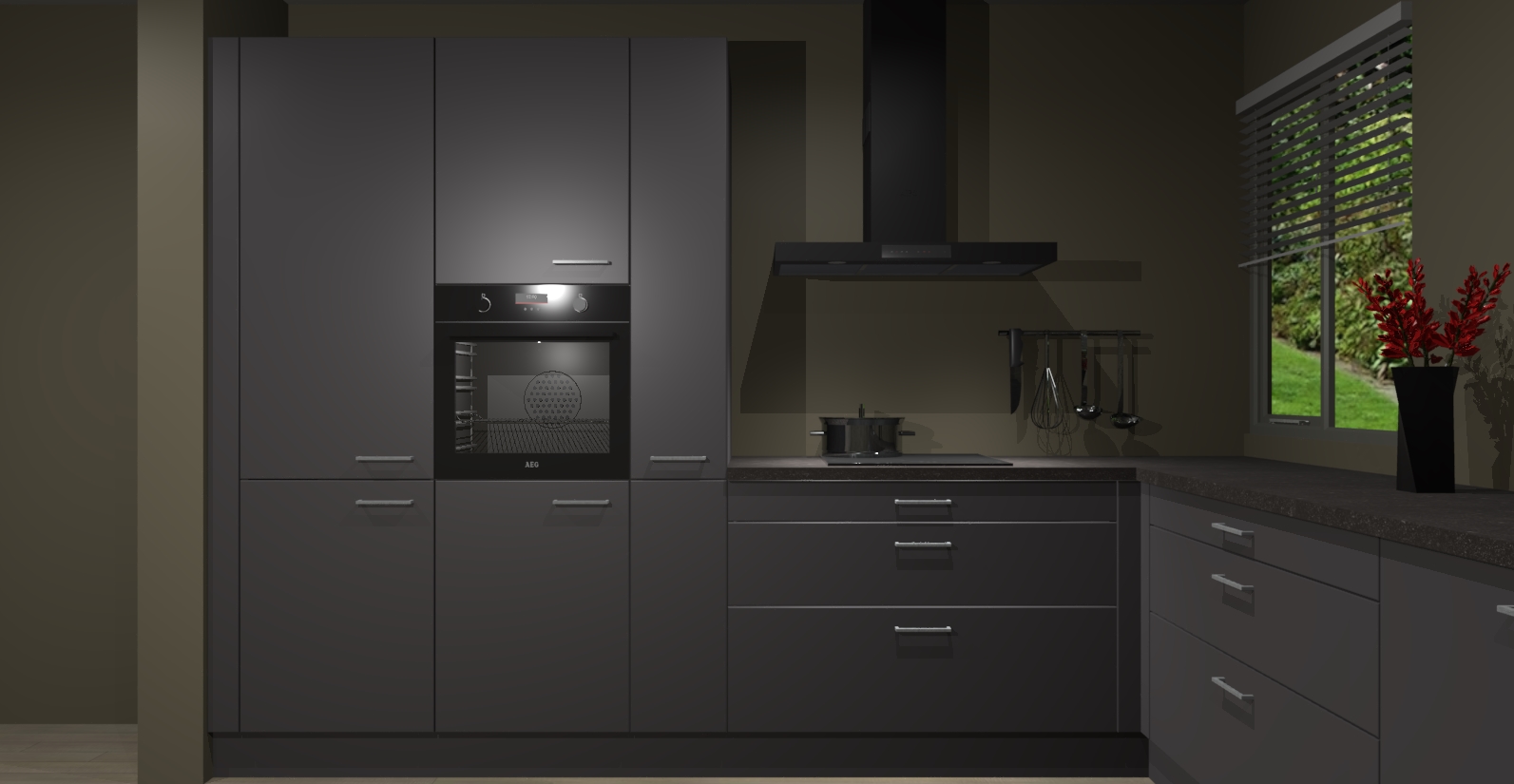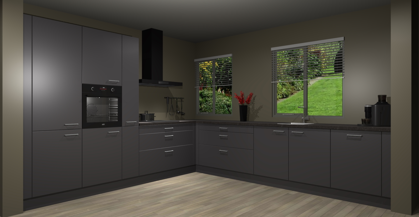 Welkom bij de Onyxgrijze keuken Palermo. Deze prachtige keuken zal de komende jaren het middelpunt van de belangstelling in uw huis zijn. Uitgerust met vijf inbouwapparaten komt u nooit kookgereedschap tekort. Bovendien geeft de warme houtlook elke ruimte een uitnodigende en tijdloze uitstraling.