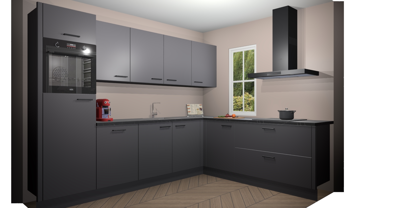 Onze keukens zijn perfect voor wie op zoek is naar een tijdloze, klassieke touch en is ontworpen voor maximale verfijning en stijl. Toon uw modegerichte persoonlijkheid aan familie en vrienden terwijl u veel gebruikersgemak creëert! Neem weloverwogen maatregel om comfort te garanderen samen met luxueuze schoonheid - met de Onyxgrijze keuken Paramaribo. Voeg dit unieke vleugje eigentijds karakter toe aan uw huis!