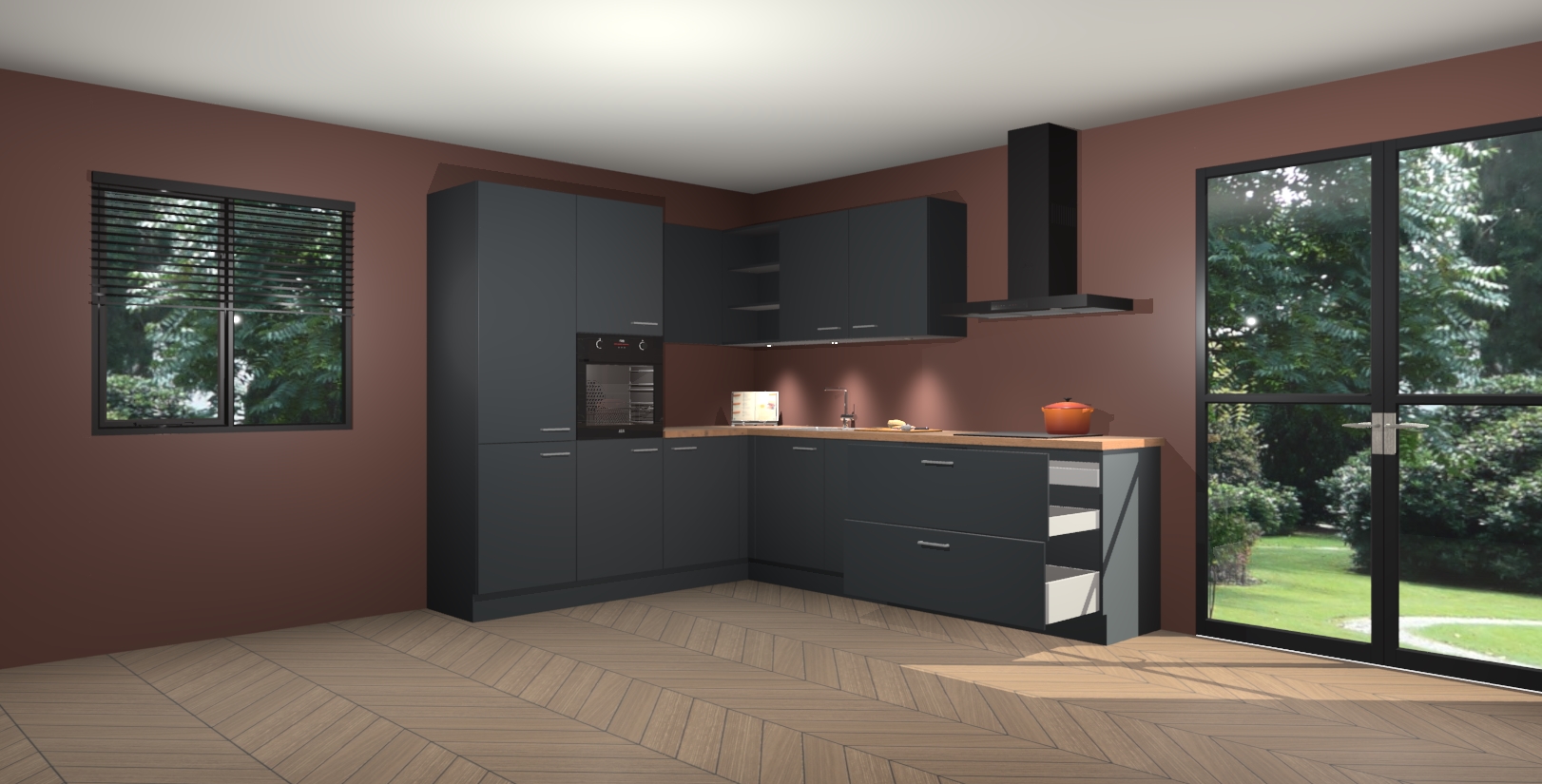 Maak kennis met de onyxgrijze keuken Parla - de perfecte aanvulling voor uw moderne keuken! Ervaar tijdloos design, elegantie en een chique uitstraling met onze zwarte handgrepen, soft-close deuren en veel opbergruimte. Dit alles wordt aangeboden tegen een vaste lage prijs voor ongeëvenaarde Duitse keukenkwaliteit!