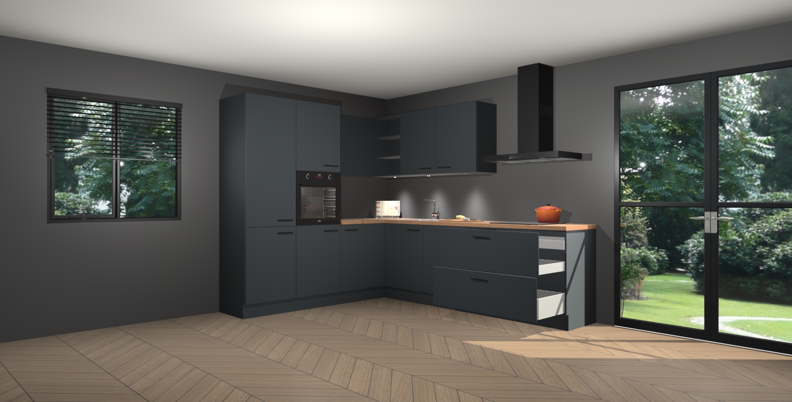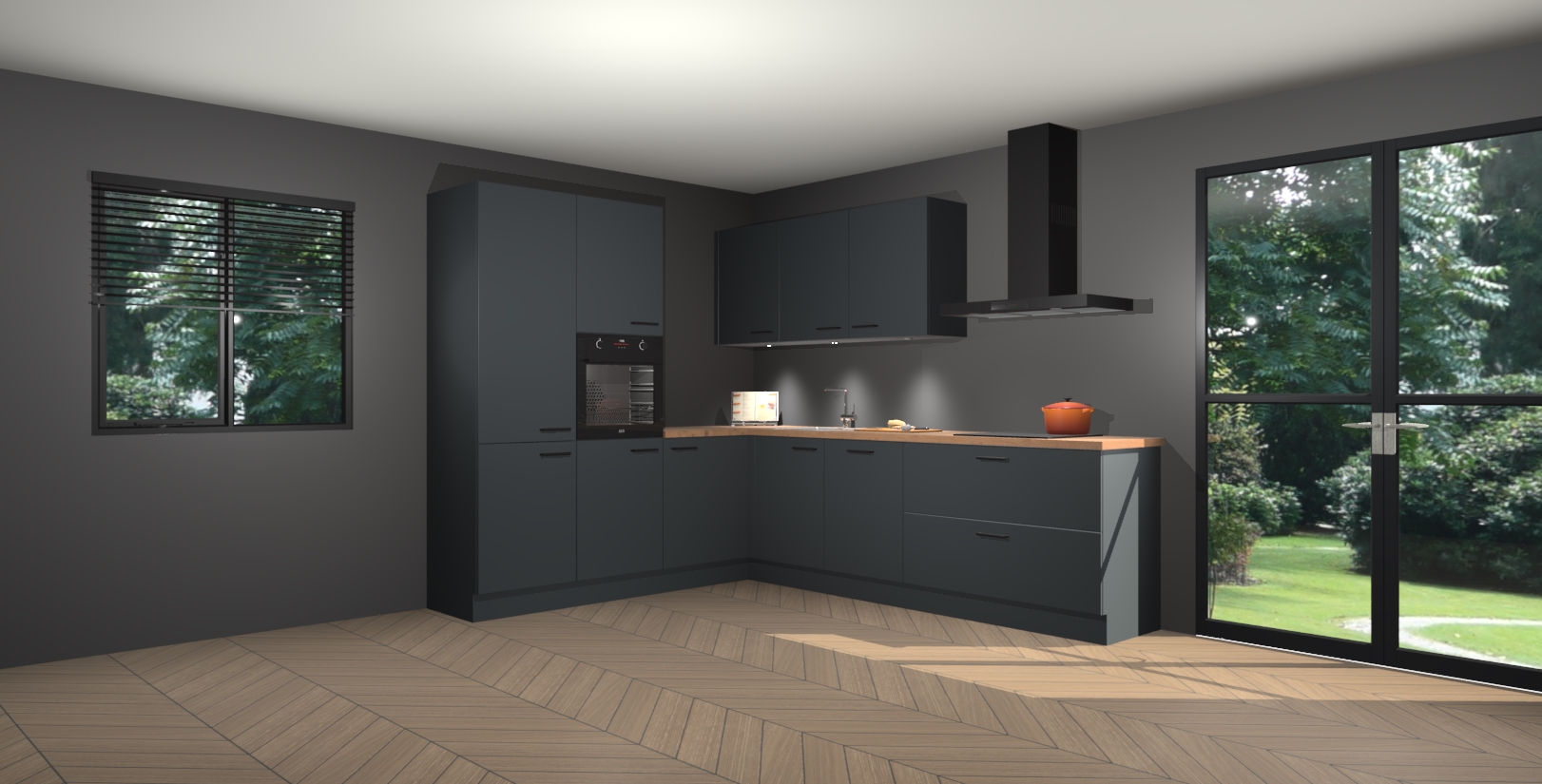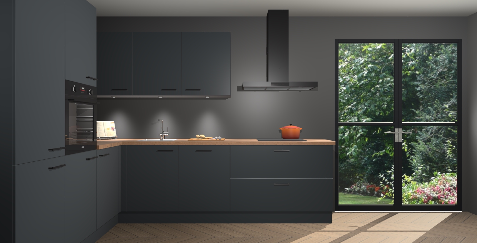 Maak kennis met de onyxgrijze keuken Parla - de perfecte aanvulling voor uw moderne keuken! Ervaar tijdloos design, elegantie en een chique uitstraling met onze zwarte handgrepen, soft-close deuren en veel opbergruimte. Dit alles wordt aangeboden tegen een vaste lage prijs voor ongeëvenaarde Duitse keukenkwaliteit!
