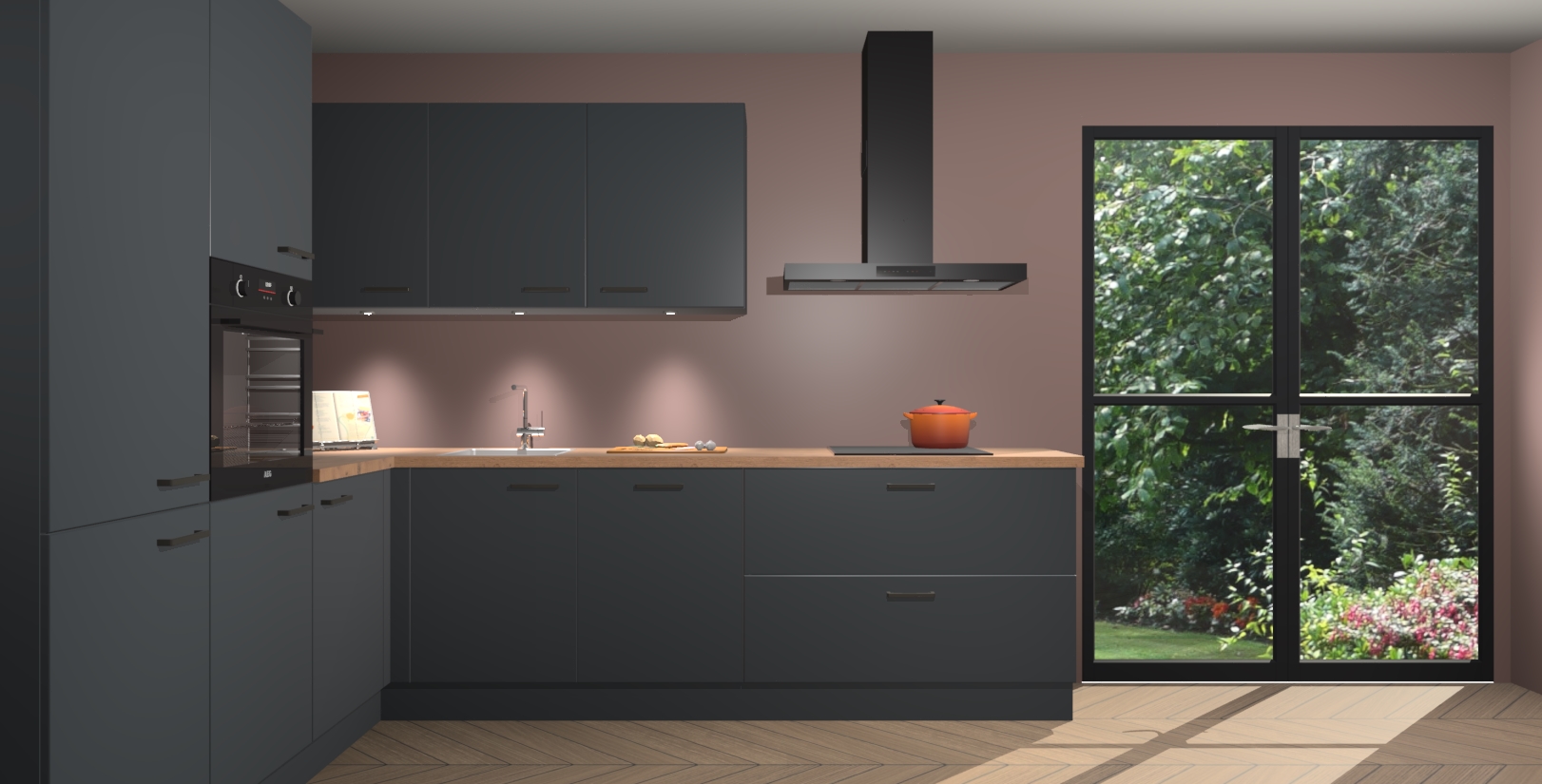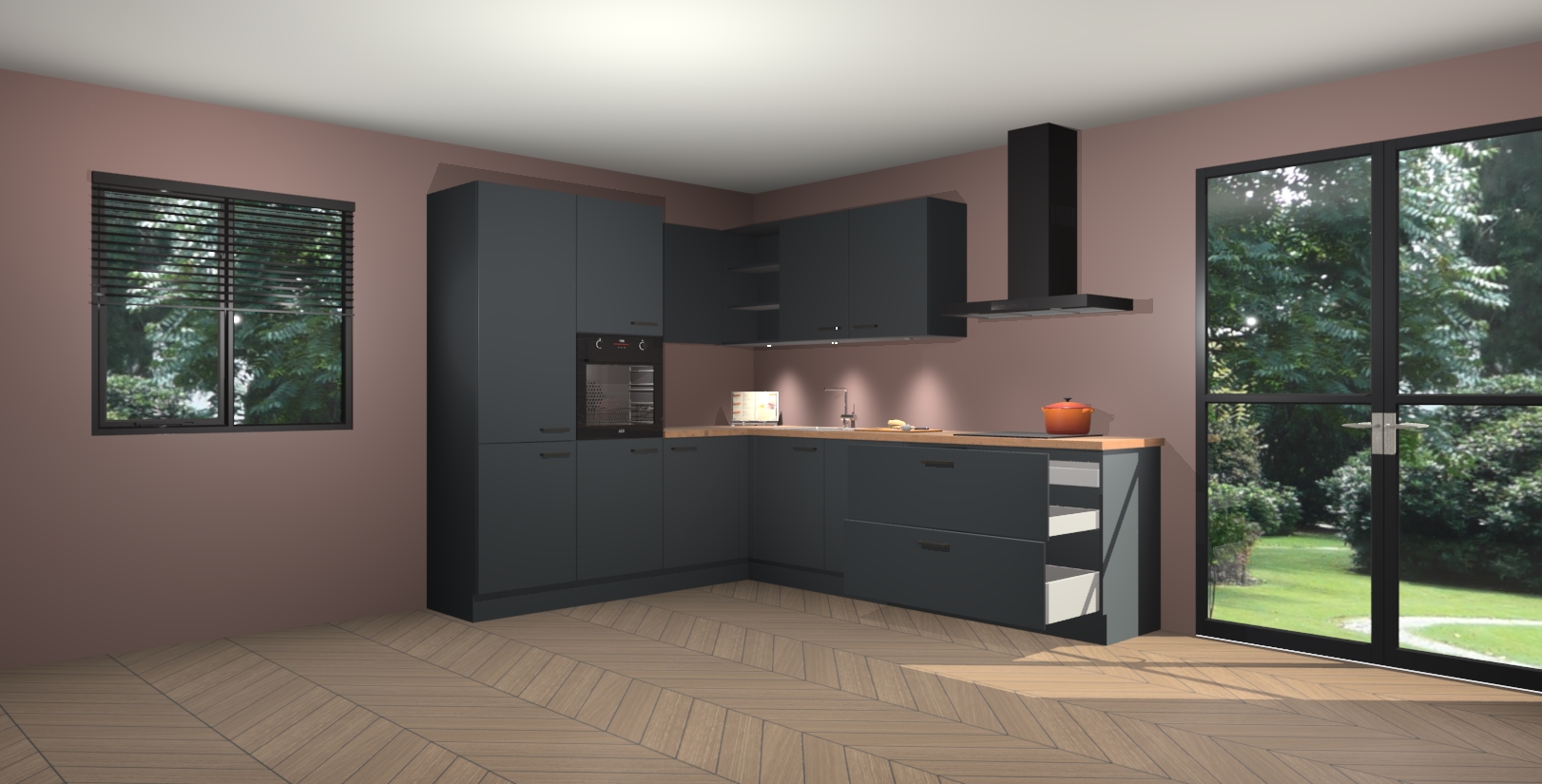 Maak kennis met de onyxgrijze keuken Parla - de perfecte aanvulling voor uw moderne keuken! Ervaar tijdloos design, elegantie en een chique uitstraling met onze zwarte handgrepen, soft-close deuren en veel opbergruimte. Dit alles wordt aangeboden tegen een vaste lage prijs voor ongeëvenaarde Duitse keukenkwaliteit!