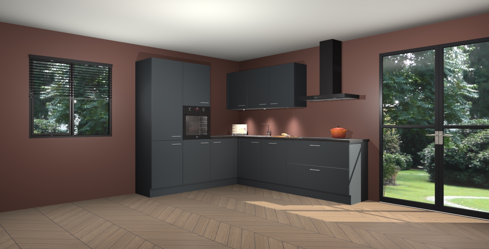 Maak kennis met de onyxgrijze keuken Parla - de perfecte aanvulling voor uw moderne keuken! Ervaar tijdloos design, elegantie en een chique uitstraling met onze zwarte handgrepen, soft-close deuren en veel opbergruimte. Dit alles wordt aangeboden tegen een vaste lage prijs voor ongeëvenaarde Duitse keukenkwaliteit!