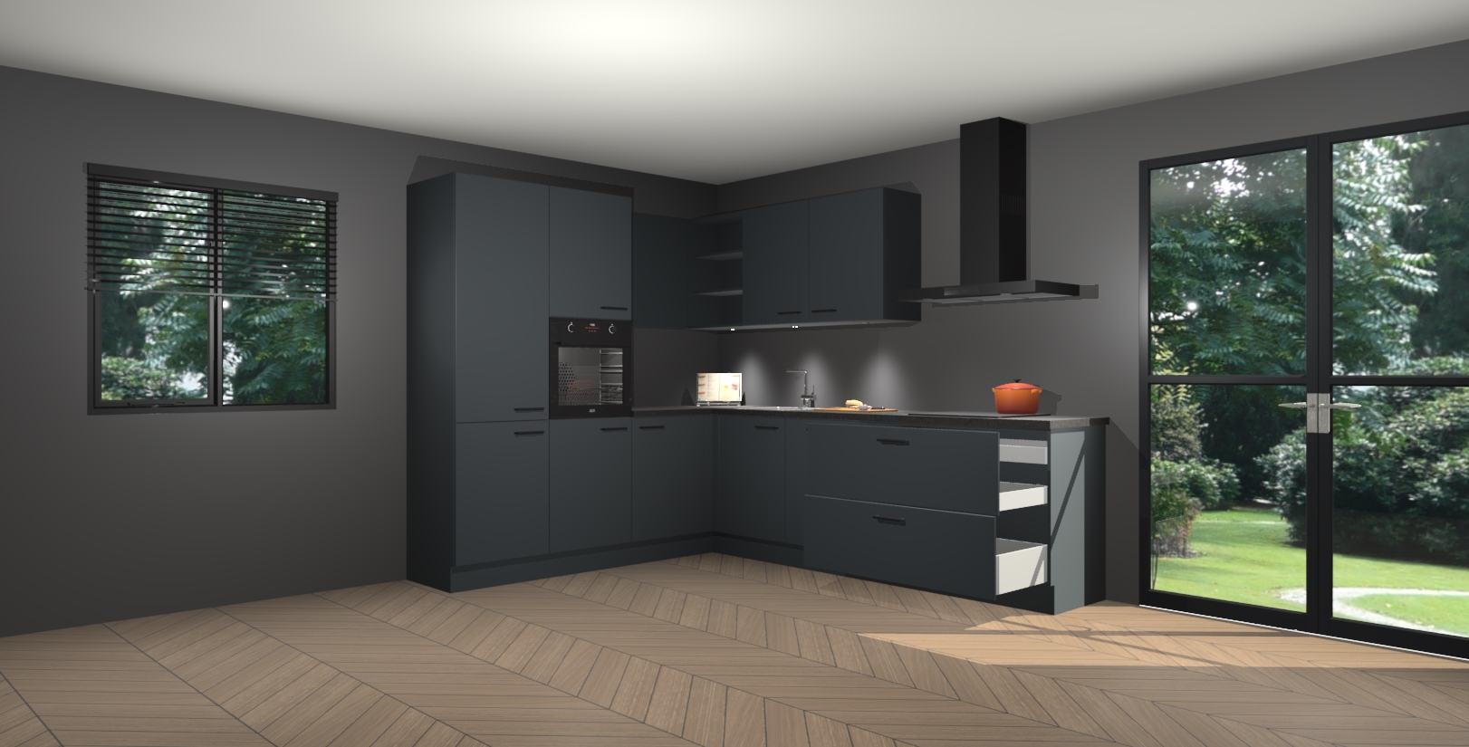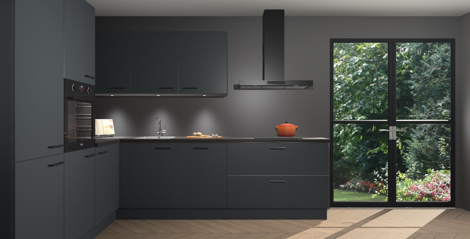 Maak kennis met de onyxgrijze keuken Parla - de perfecte aanvulling voor uw moderne keuken! Ervaar tijdloos design, elegantie en een chique uitstraling met onze zwarte handgrepen, soft-close deuren en veel opbergruimte. Dit alles wordt aangeboden tegen een vaste lage prijs voor ongeëvenaarde Duitse keukenkwaliteit!