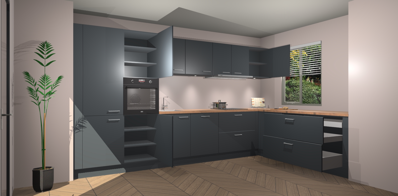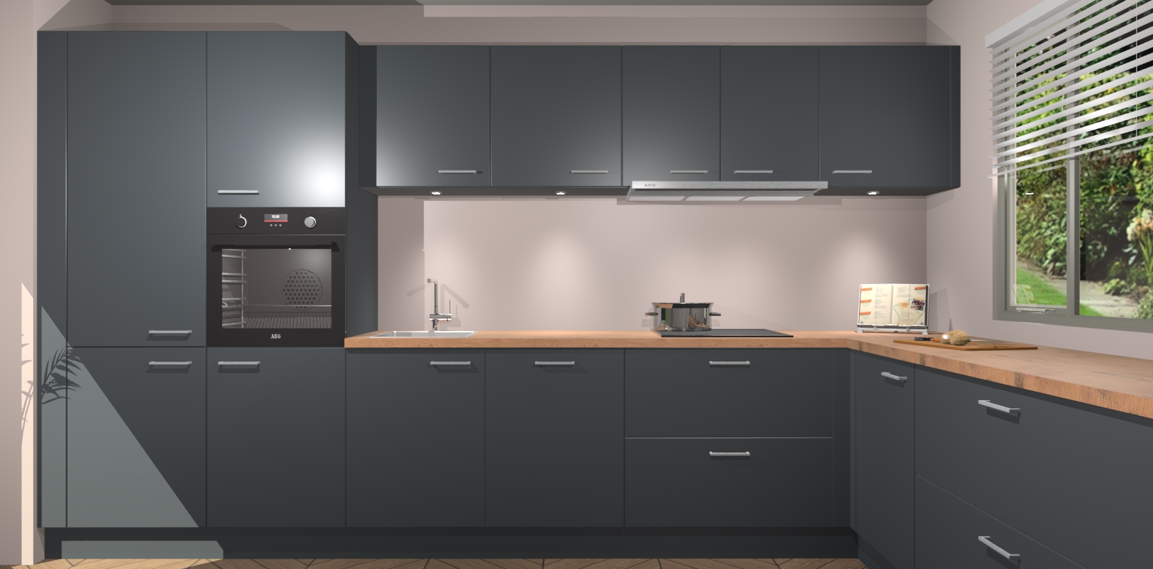 Verwelkom de natuurlijke warmte van de Onyxgrijze keuken Petten in uw huis. Deze prachtige hoekkeuken met zijn moderne design en warme houten look geeft u meer dan genoeg opbergruimte om uw comfortabel te voelen in uw keuken. Geniet van soft-close deuren die al uw gasten het gevoel zullen geven dat ze zich in een luxueuze ruimte bevinden.