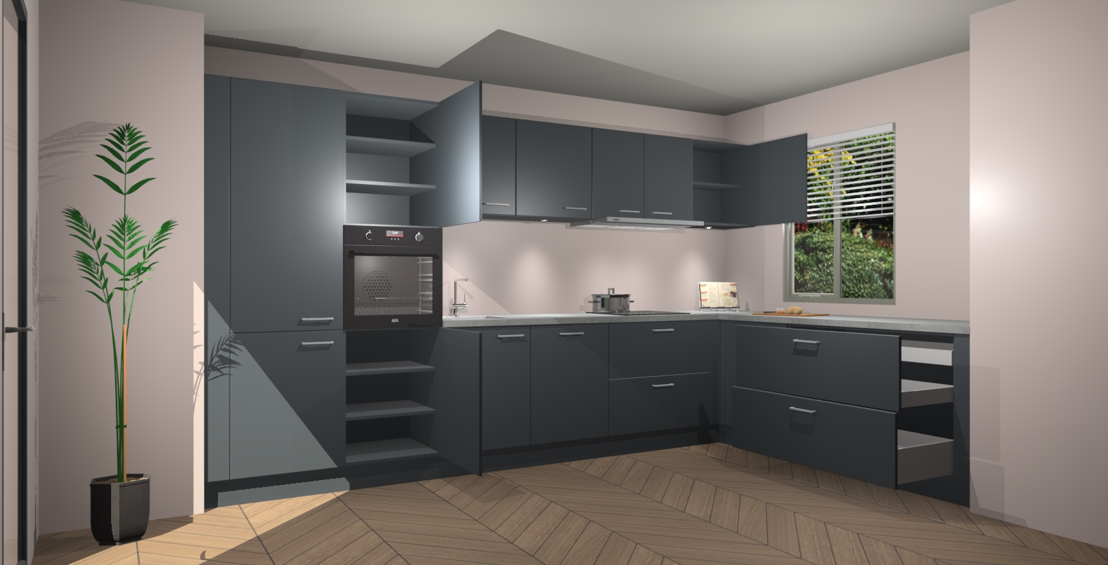 Verwelkom de natuurlijke warmte van de Onyxgrijze keuken Petten in uw huis. Deze prachtige hoekkeuken met zijn moderne design en warme houten look geeft u meer dan genoeg opbergruimte om uw comfortabel te voelen in uw keuken. Geniet van soft-close deuren die al uw gasten het gevoel zullen geven dat ze zich in een luxueuze ruimte bevinden.