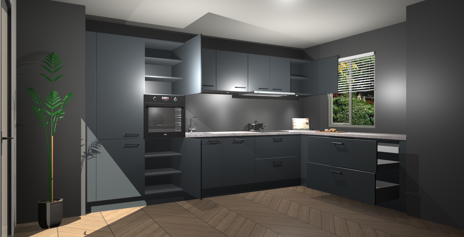 Inclusief plinten, stelpoten en werkblad