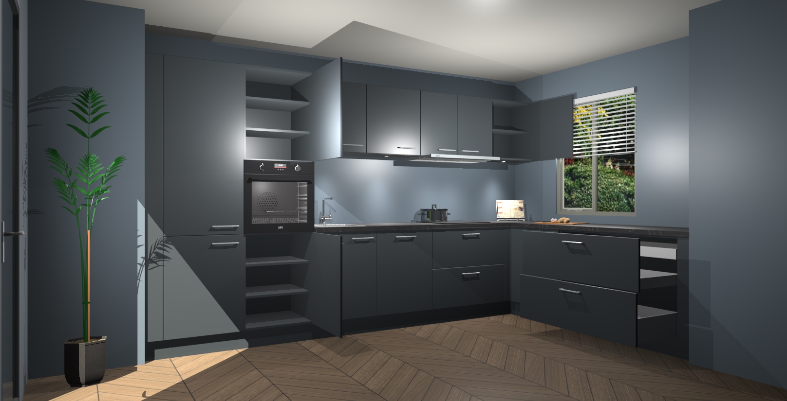 Verwelkom de natuurlijke warmte van de Onyxgrijze keuken Petten in uw huis. Deze prachtige hoekkeuken met zijn moderne design en warme houten look geeft u meer dan genoeg opbergruimte om uw comfortabel te voelen in uw keuken. Geniet van soft-close deuren die al uw gasten het gevoel zullen geven dat ze zich in een luxueuze ruimte bevinden.