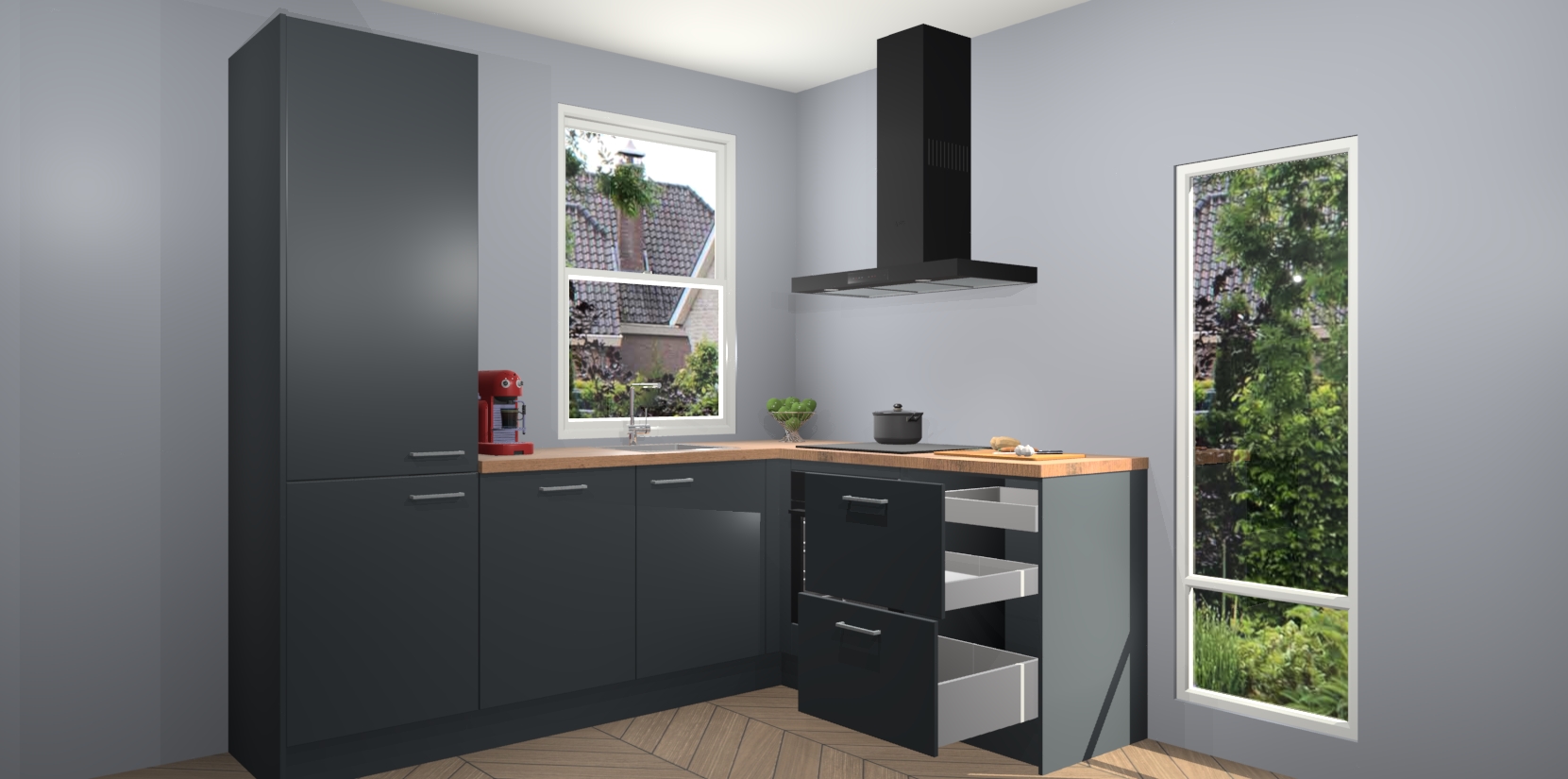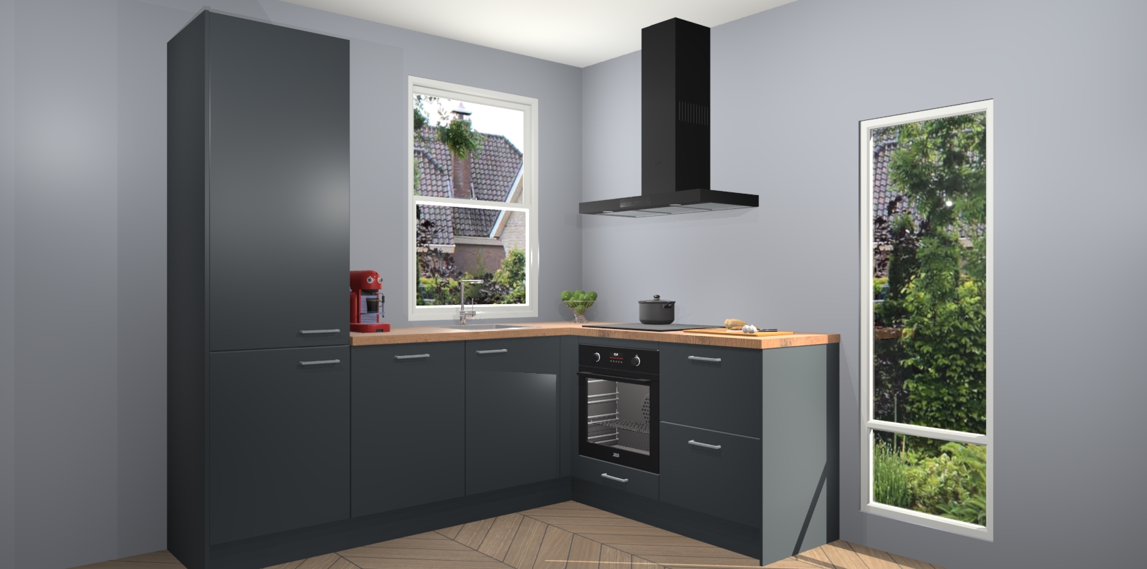 De prachtige Onyxgrijze keuken Phuket is de perfecte keuze als u op zoek bent naar een moderne hoekkeuken met alle luxe en comfort die u kunt verwachten! De uitstraling in het houtlook-design draagt bij aan de warme sfeer die u nu al voelt wanneer u er naar kijkt. Heeft u genoeg van ouderwetse keukens? Probeer dan direct deze moderne, mooie hoekkeukens en laat iedereen verbluft achter!
